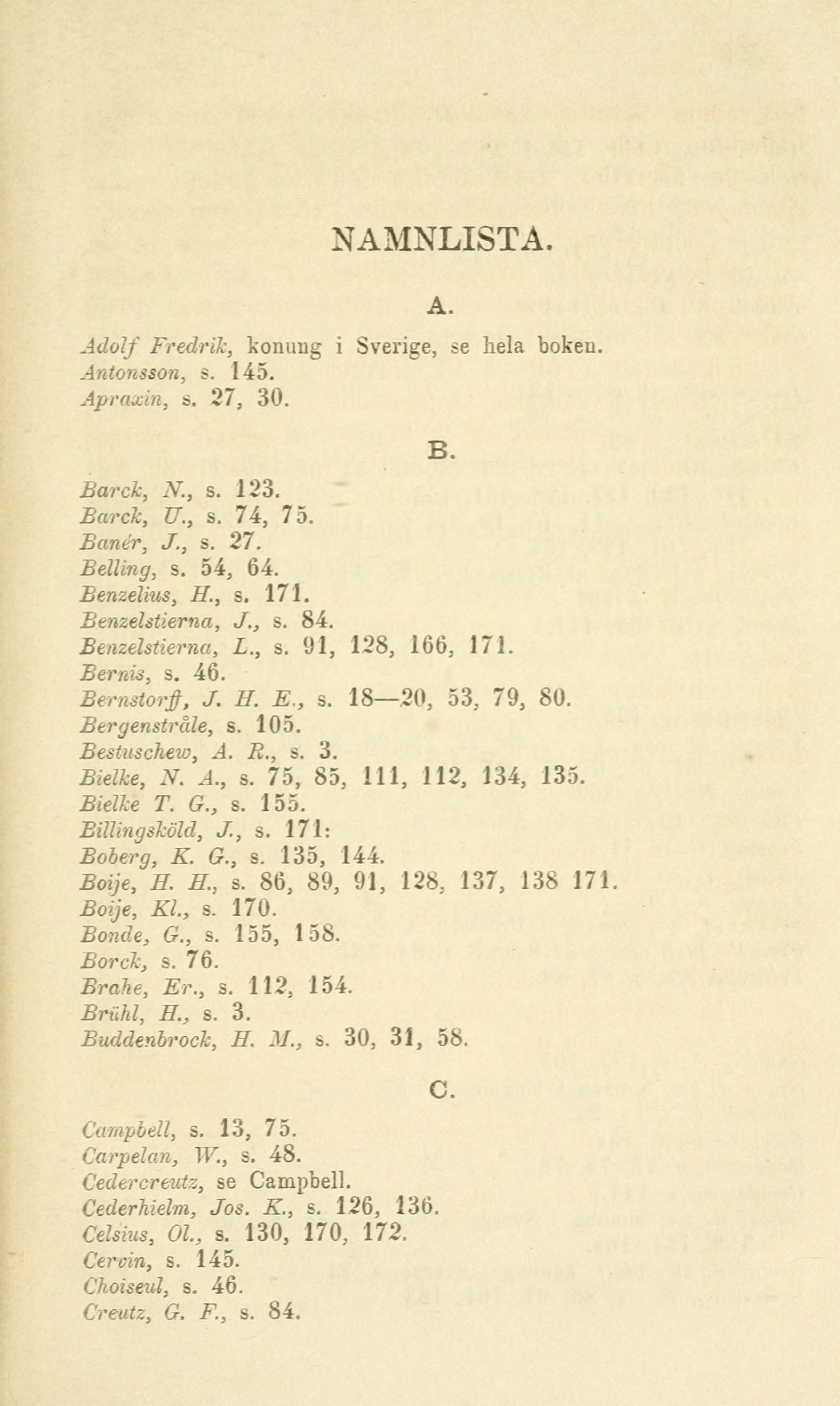 Benzelstierna, L., s. 91, 128, 166, 171.