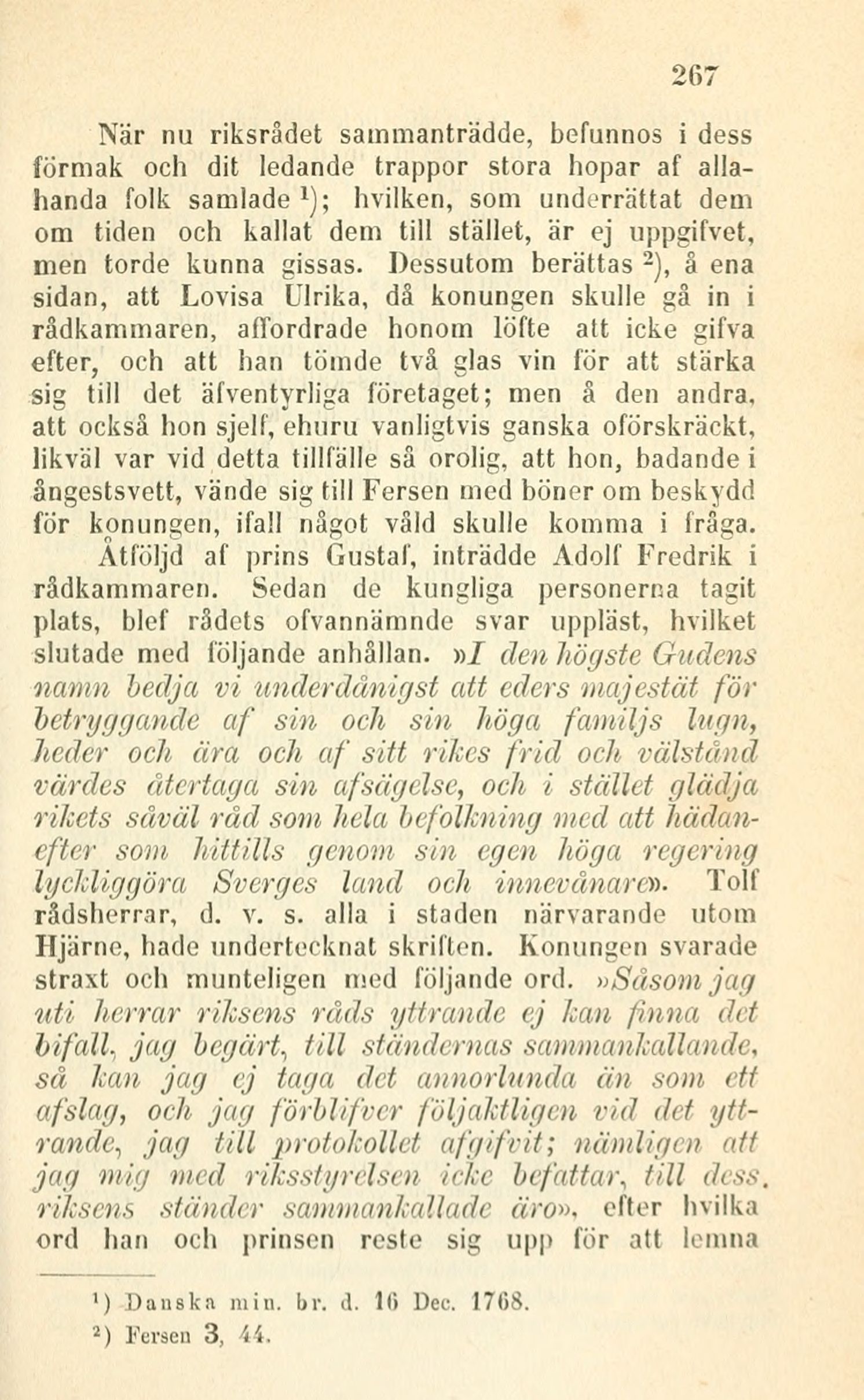 sidan, att Lovisa Ulrika, då konungen skulle gå in i