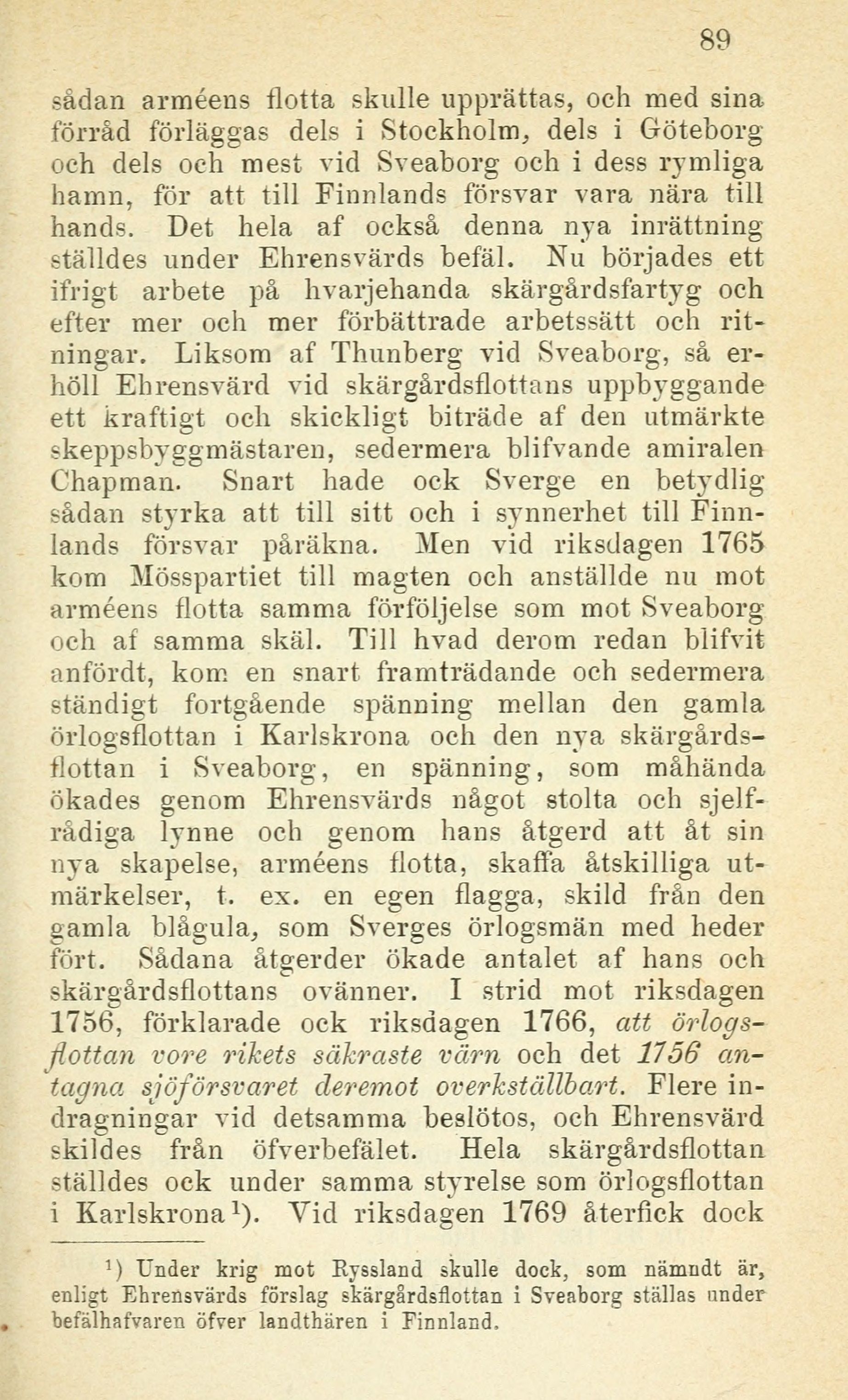 erhöll Ehrensvärd vid skärgårdsflottans uppbyggande