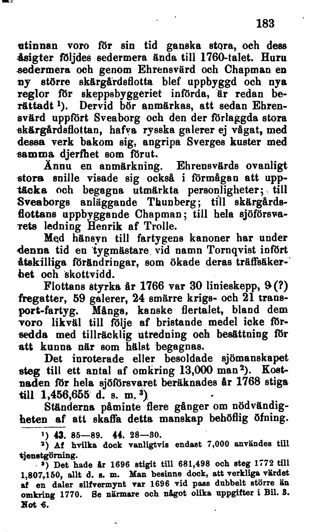 Kostnaden för hela sjöförsvaret beräknades år 1768 stiga
