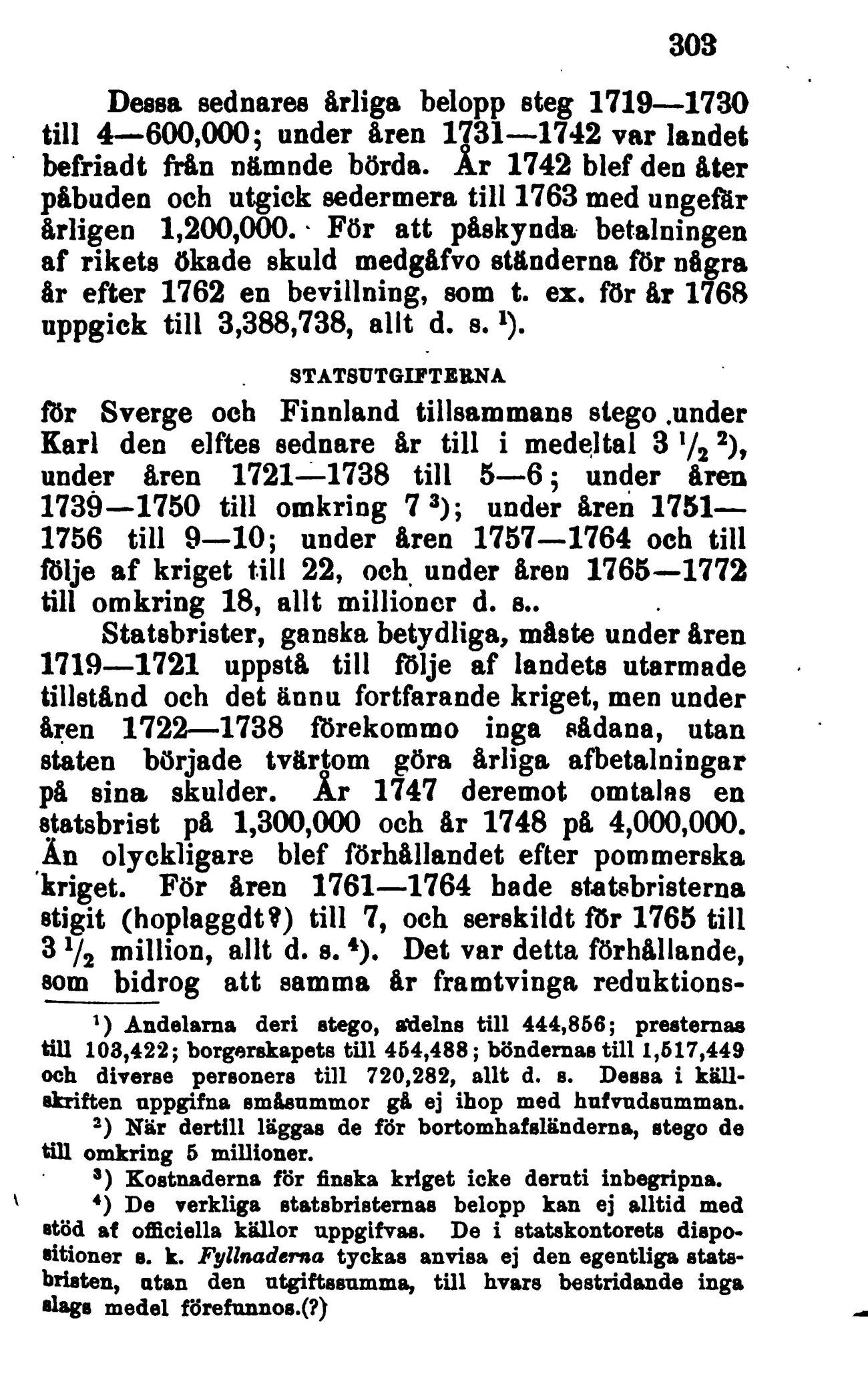 statsbrist på 1,300,000 och år 1748 på 4,000,000.