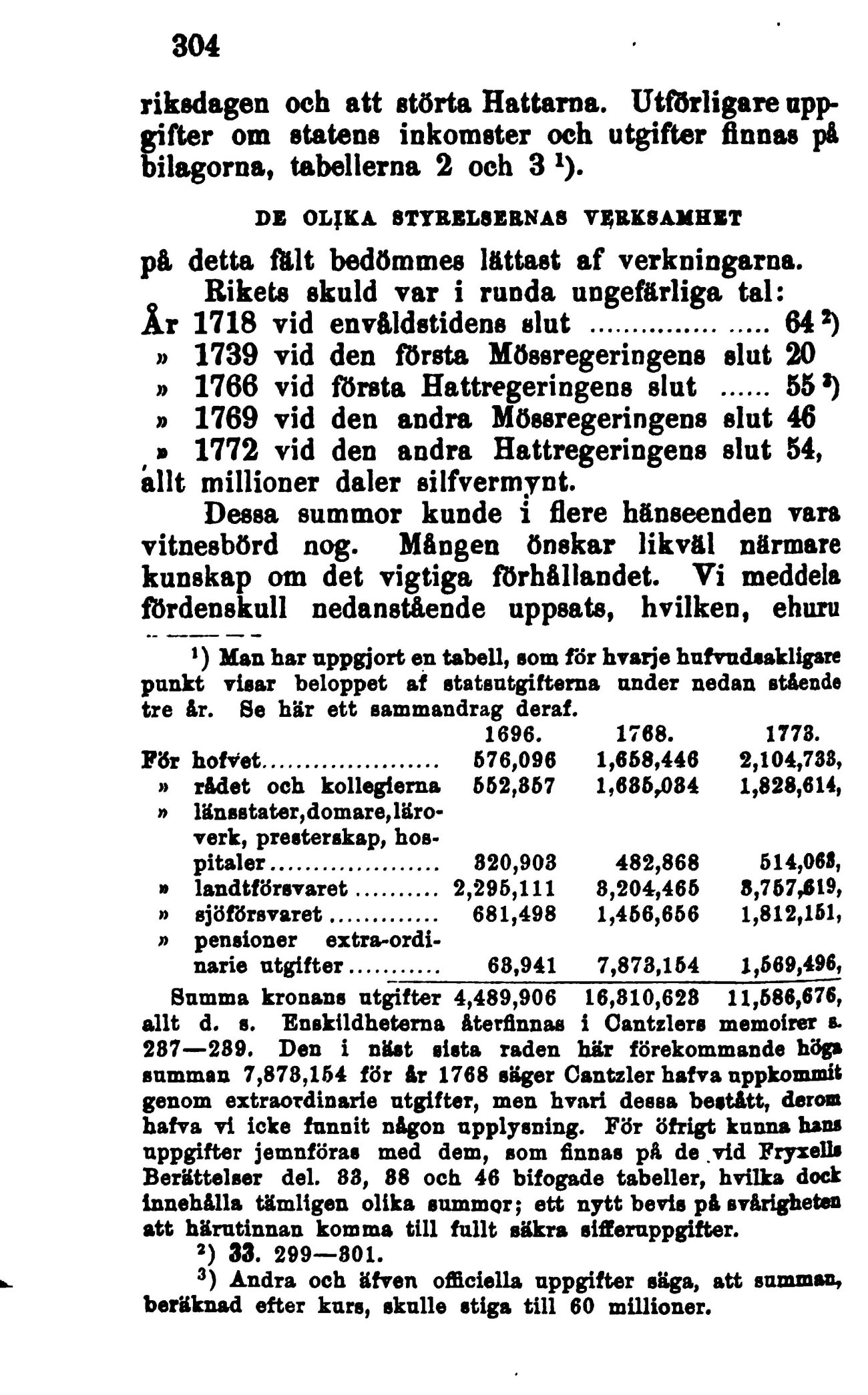 summan 7,878,154 för år 1768 säger Cantzler hafva uppkommit