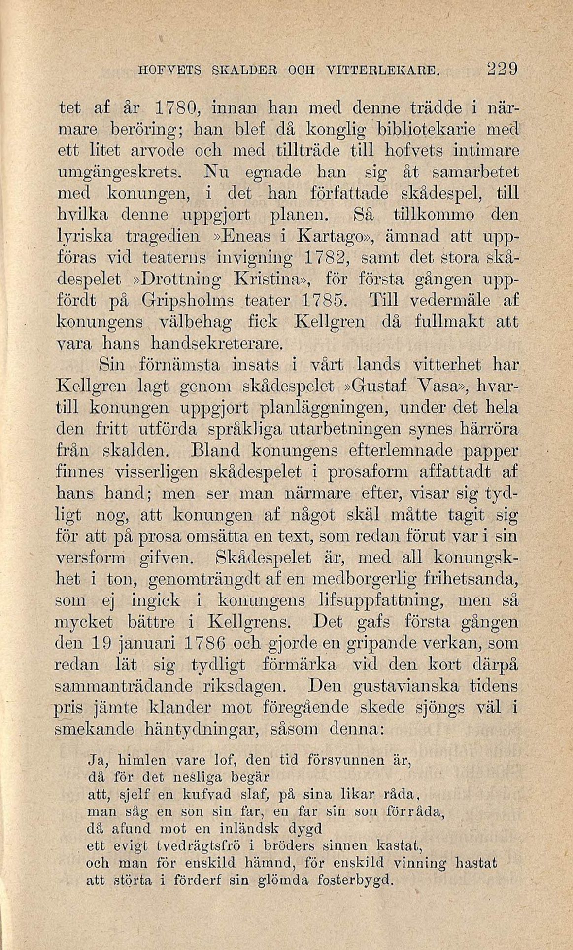 Kellgren lagt genom skådespelet »Gustaf Vasa»,