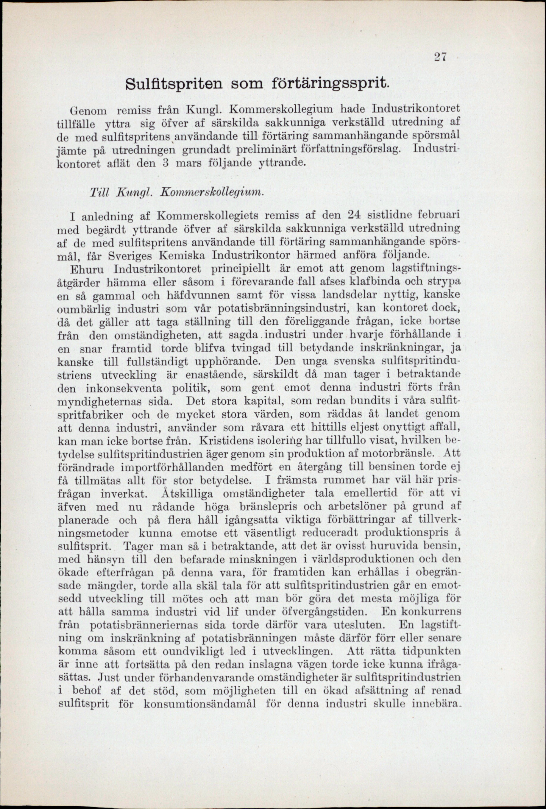 Full resolution (JPEG) - On this page / på denna sida - N:o 3. 16 Mars 1920 - Meddelanden från Sveriges kemiska industrikontor - Sulfitspriten som förtäringssprit