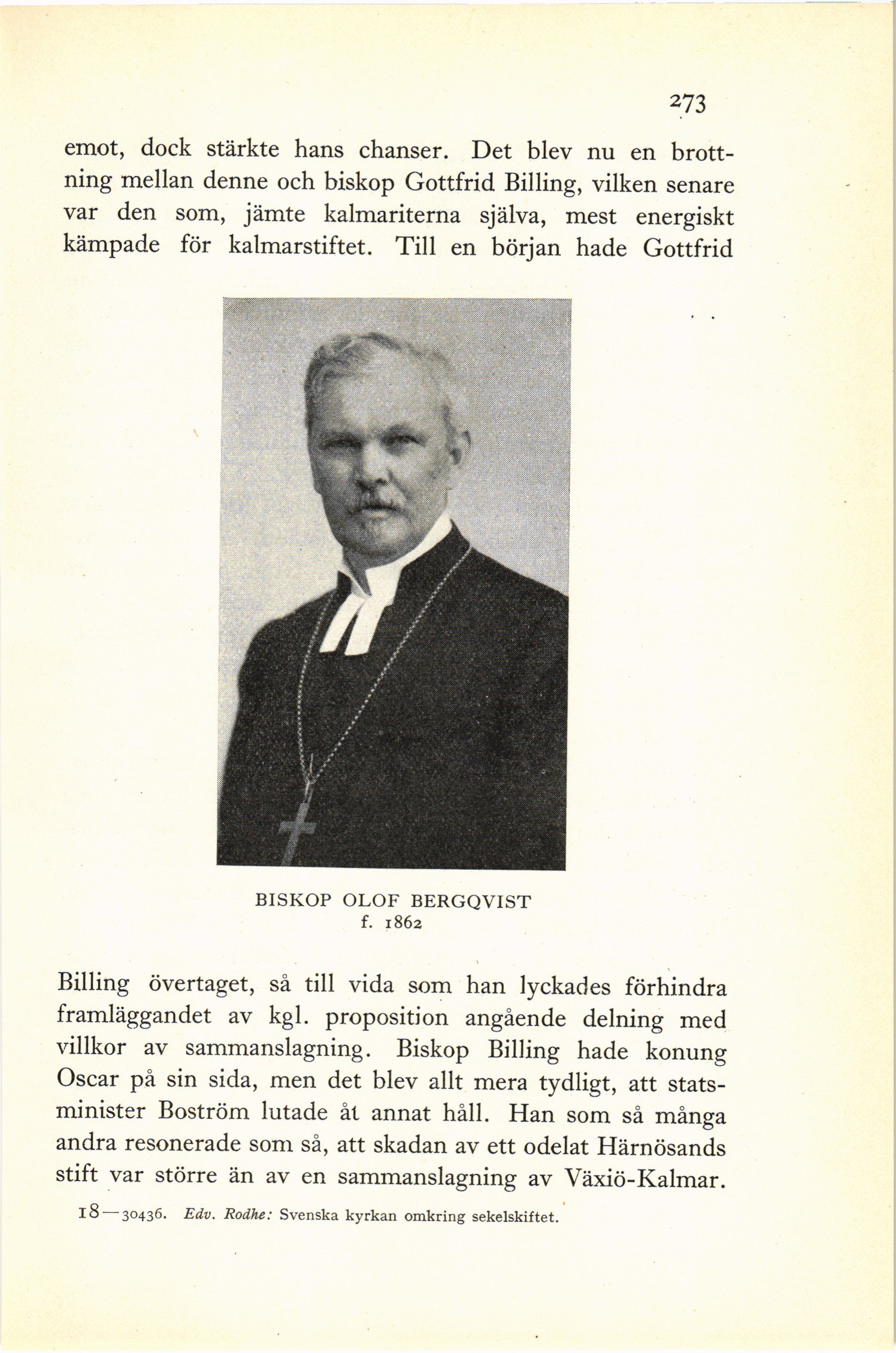 brottning mellan denne och biskop Gottfrid Billing, vilken senare