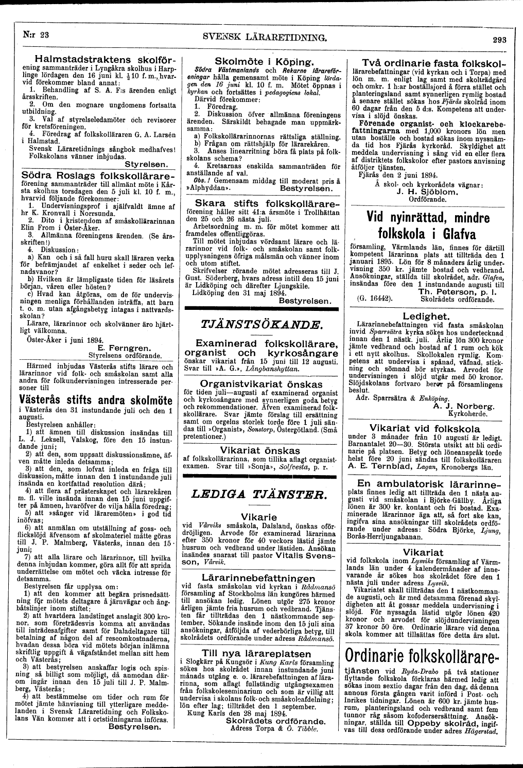 meddelanden i Svensk Läraretidning och