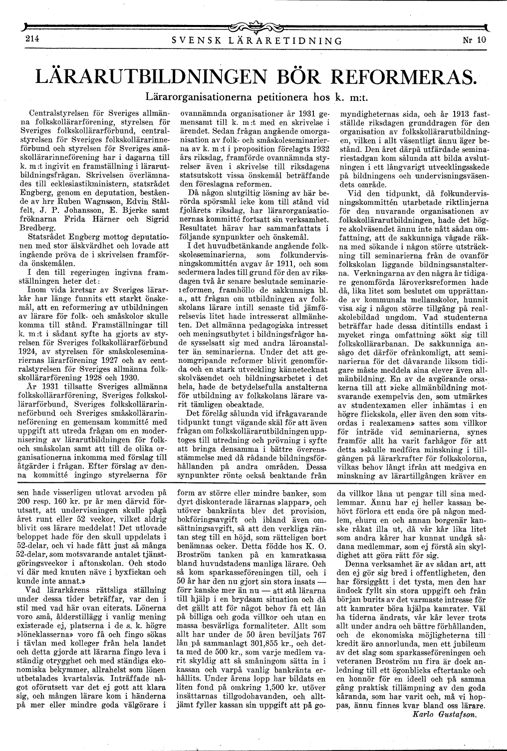 Full resolution (TIFF) - On this page / på denna sida - Nr 10. (2671) 8 mars 1933 - Karlo Gustafson: Ett halvsekeljubileum. Stockholms folkskollärares sparkasseförening 50 år - Lärarutbildningen bör reformeras