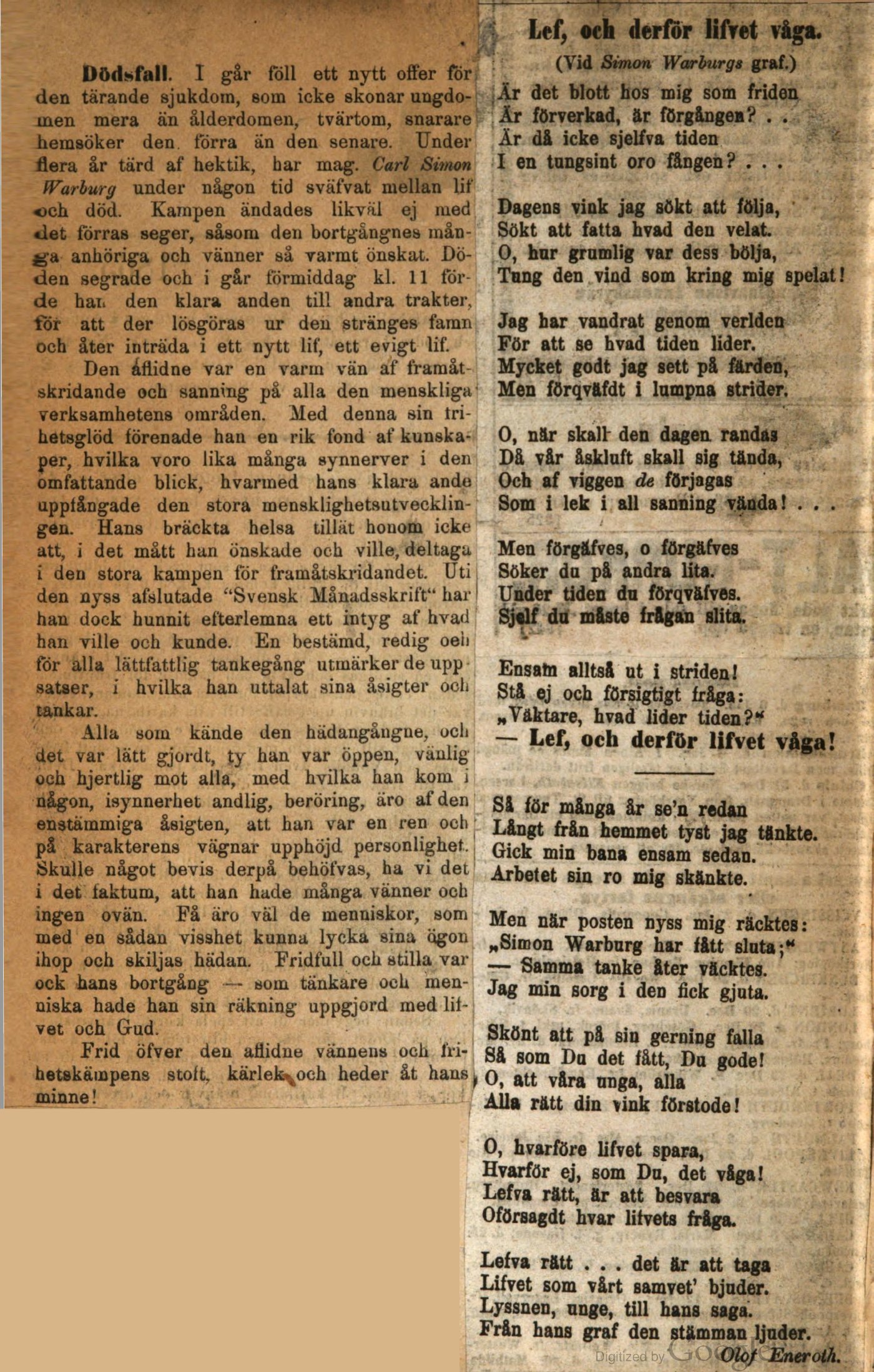 den nyss afslutade “Svensk Månadsskrift“ har han dock hunnit efterlemna ett intyg af hvad