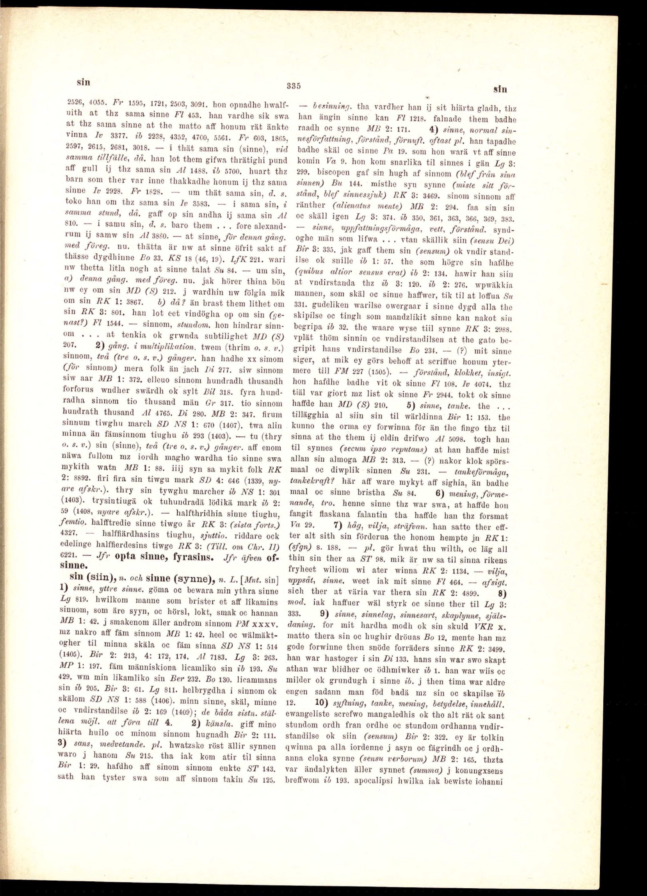 sin (siin), n. och sinne (synne), ». L. [Mnt. sin]