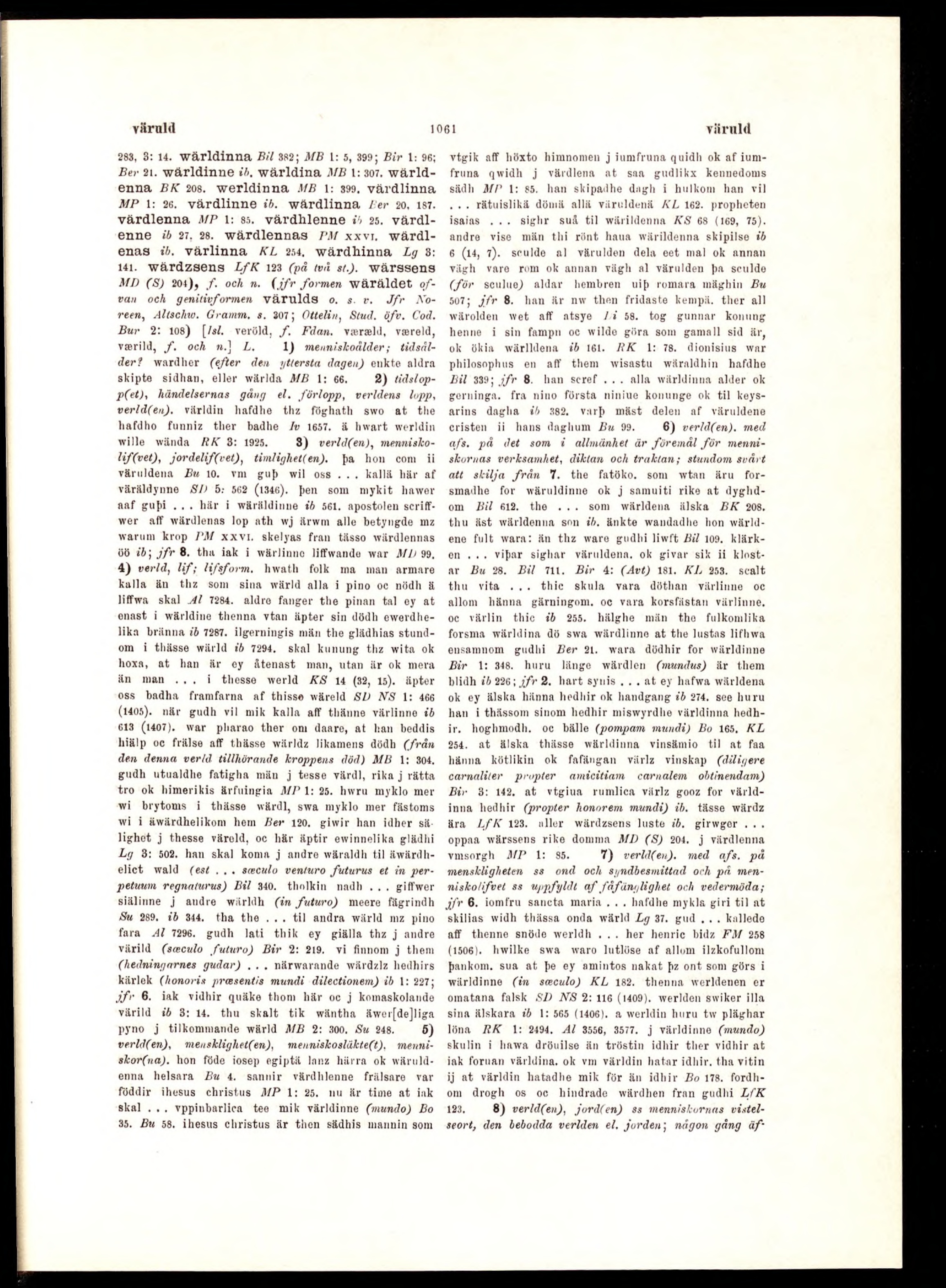 Ml) (S) 201), /. och n. (jfr formen wäräldet