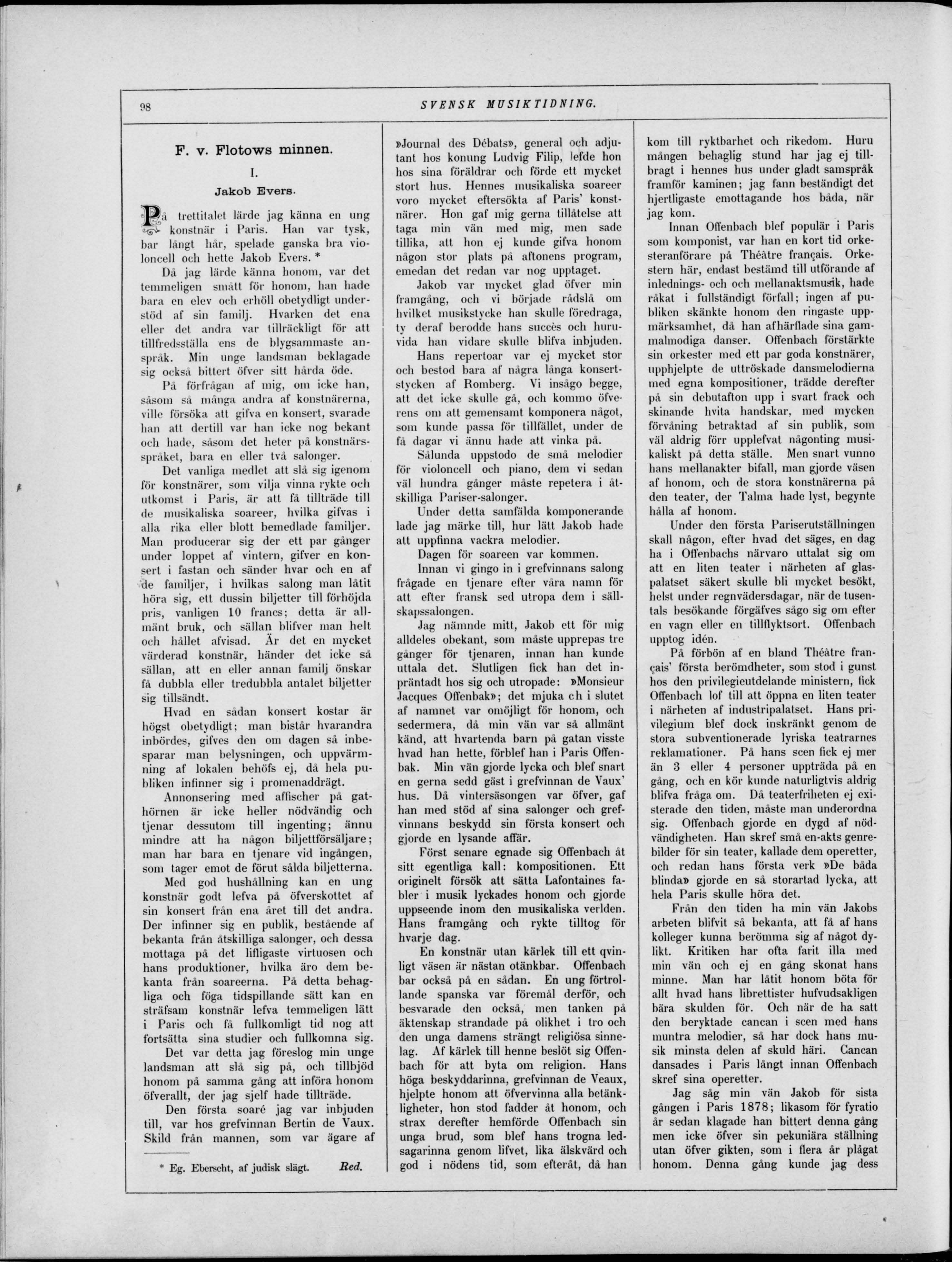 F. v. Flotows minnen. I. Jakob Evers. Blå trettitalet lärde jag känna en ung ål* konstnär i Paris. Han var tysk, bar långt hår, spelade ganska bra