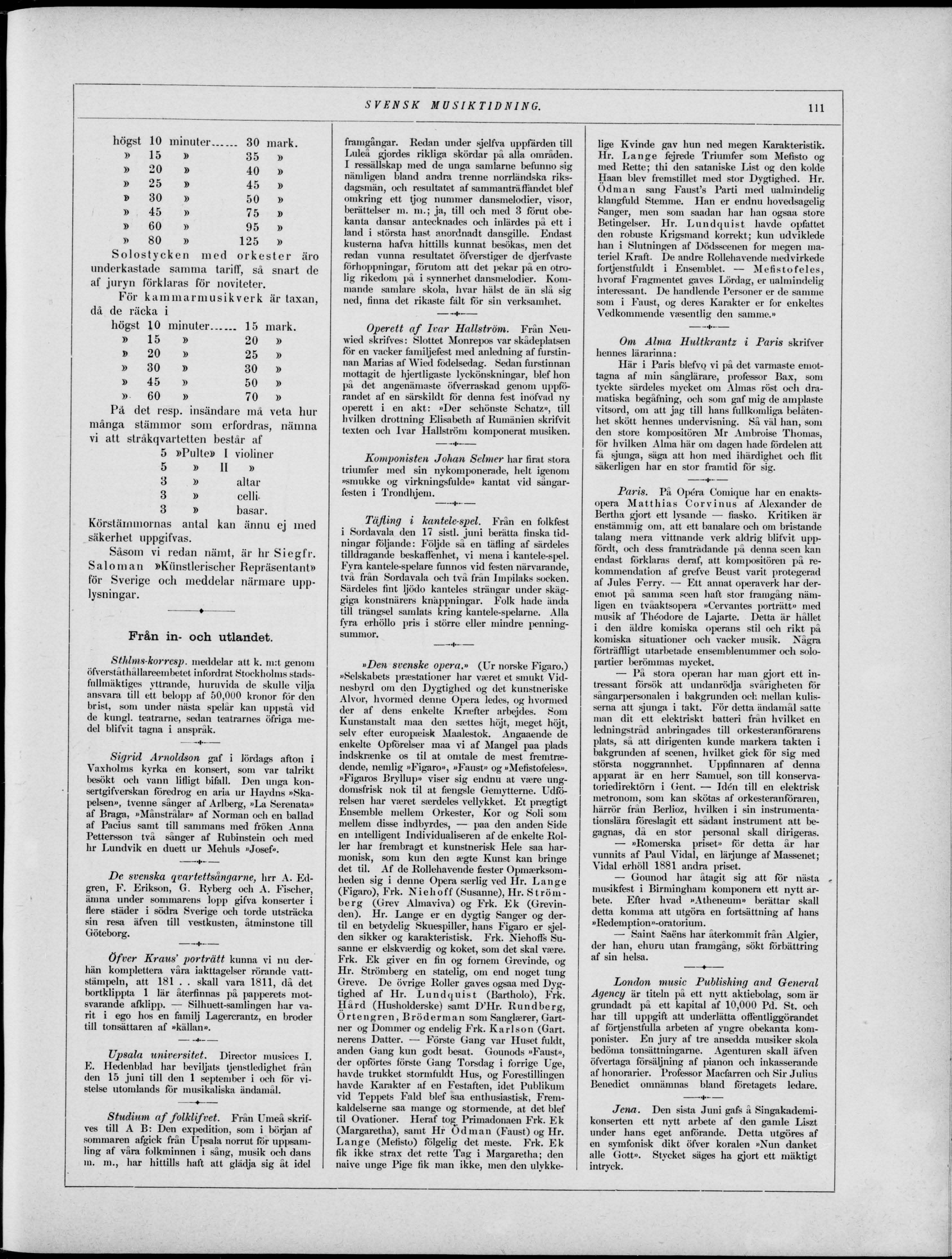 omkring ett tjog nummer dansmelodier, visor,