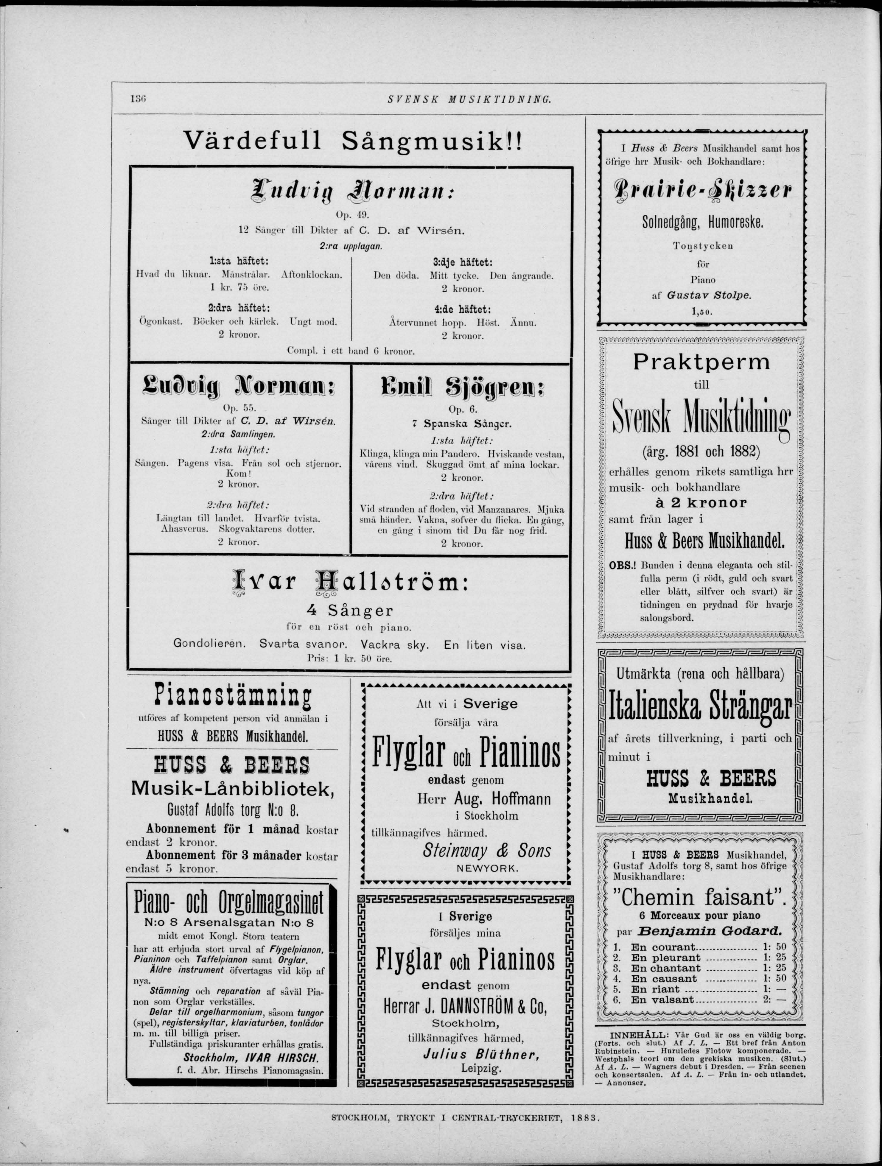 STOCKHOLM, TRYCKT I CENTRAL-TRYCKERTET, 1 883.