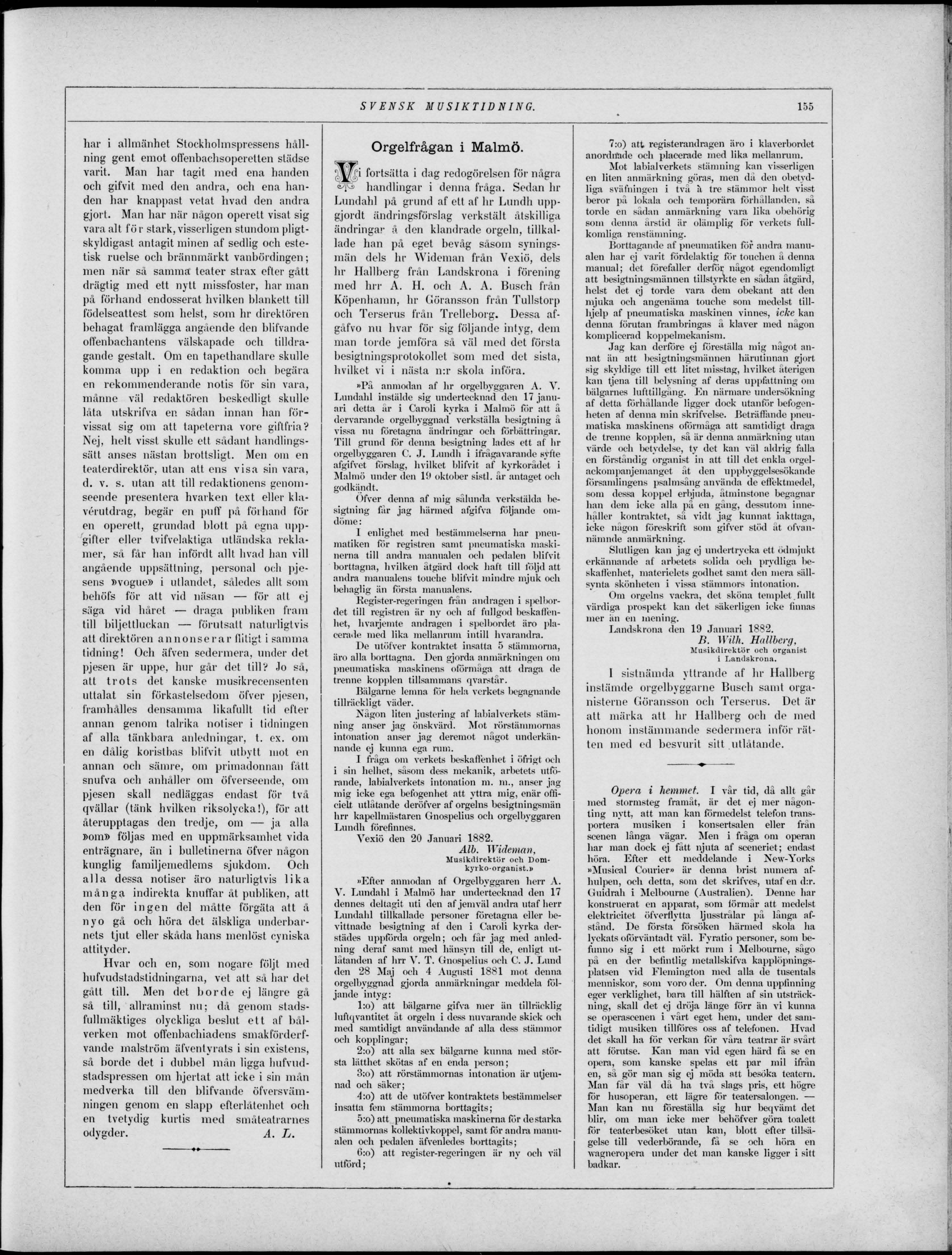 Landskrona den 19 Januari 1882.