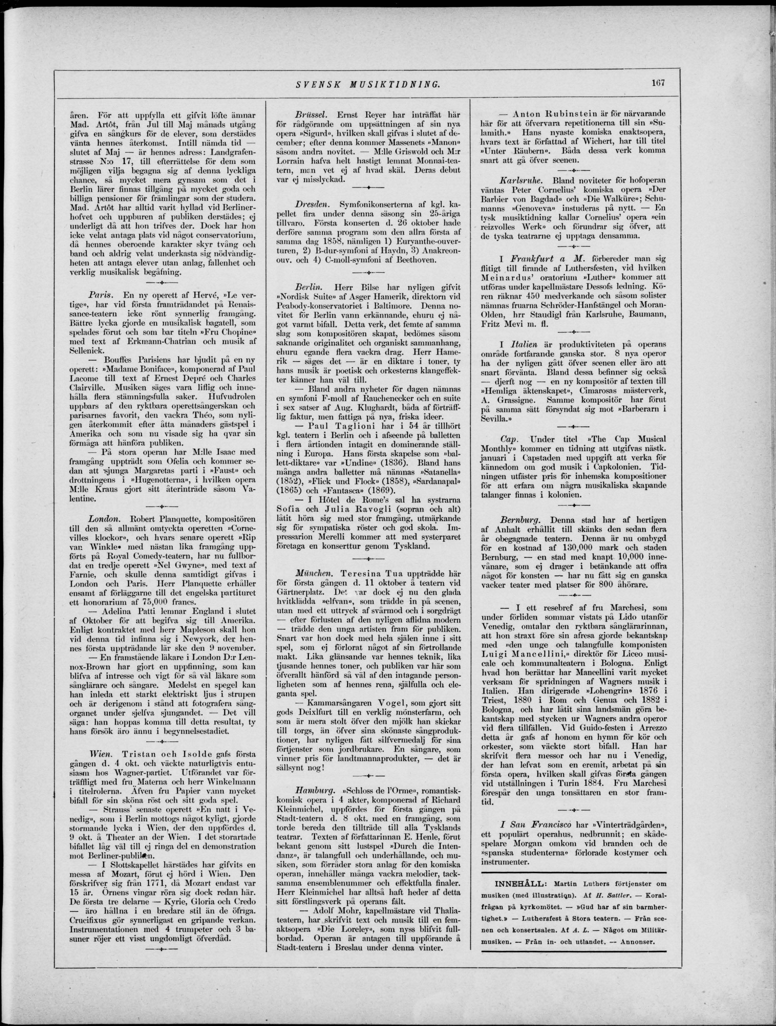 Militärmusiken. — Från in- och utlandet. — Annonser.
