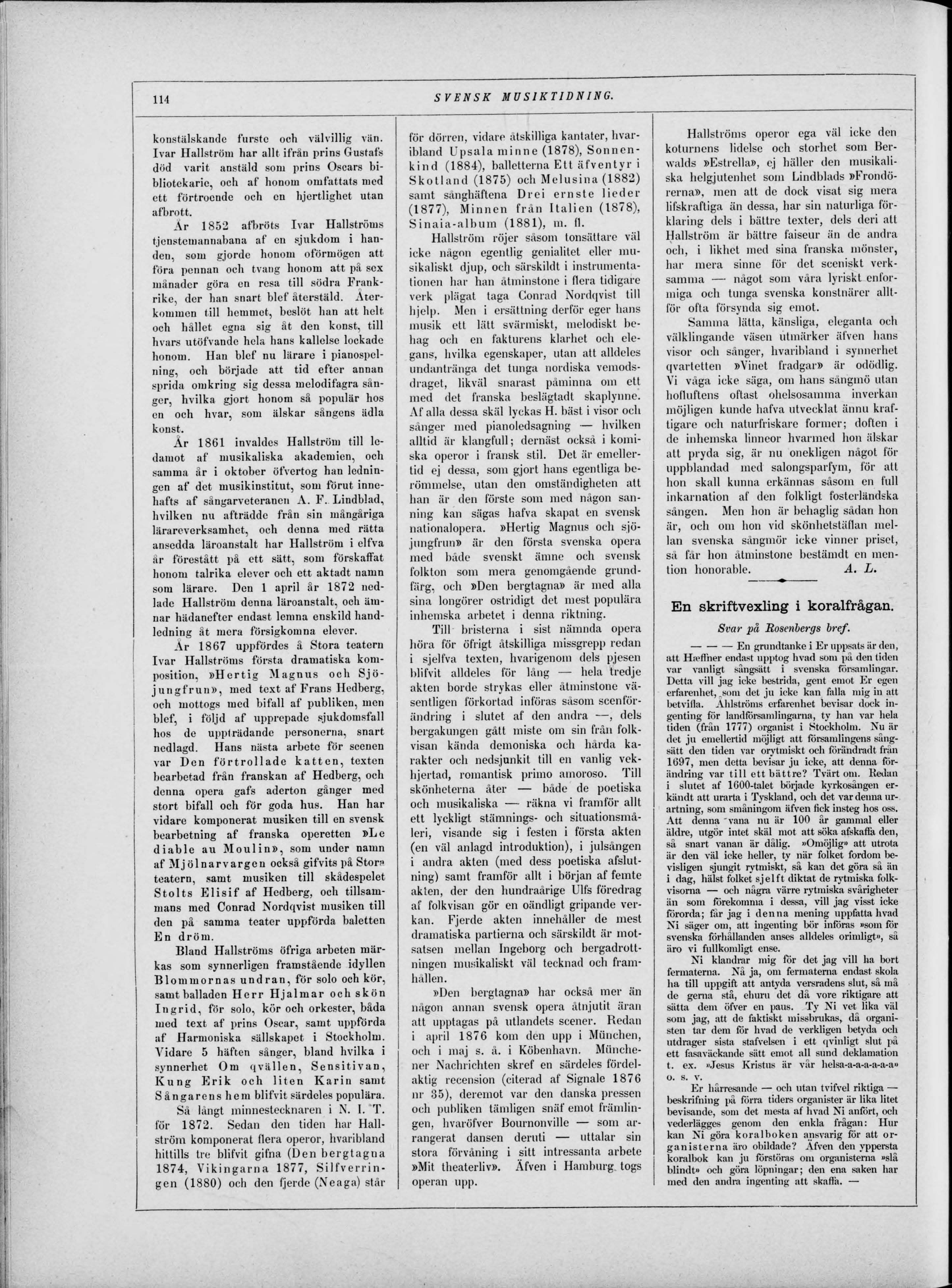 Hallström komponerat flera operor, hvaribland