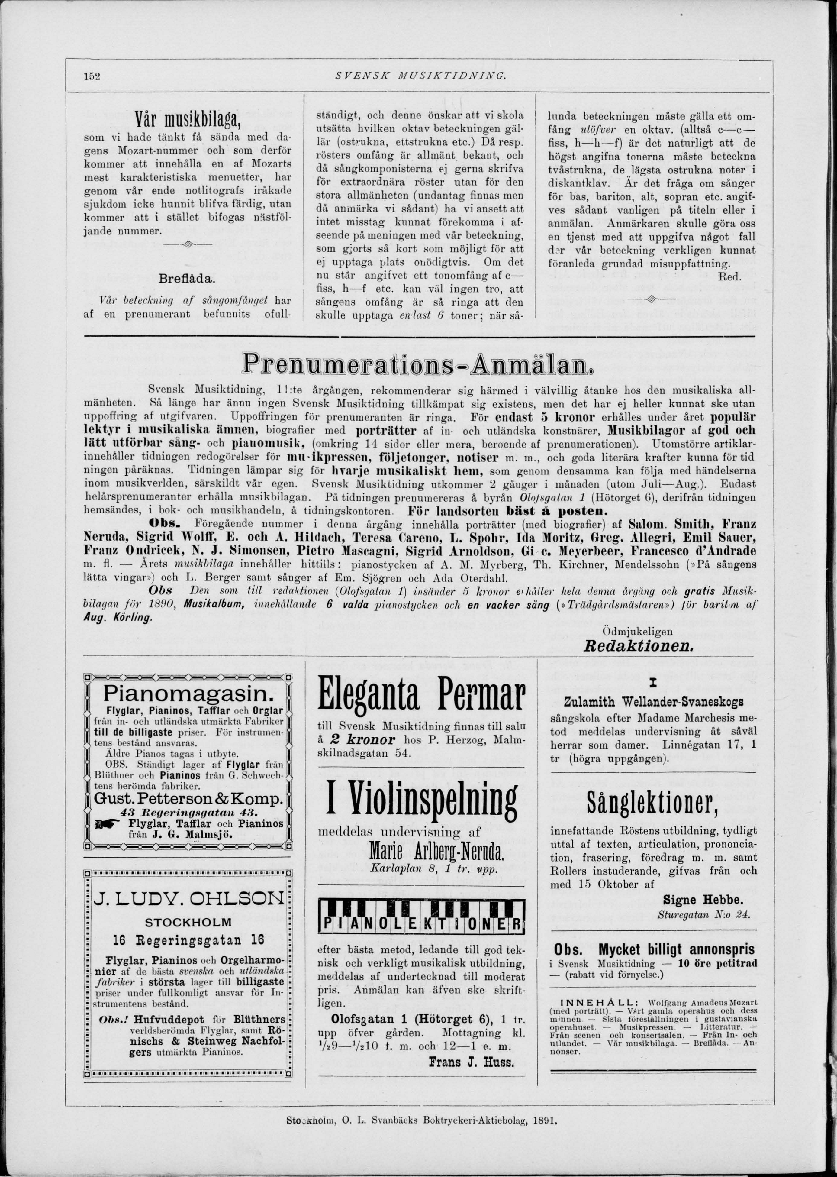 helårsprenumeranter erhålla musikbilagan. På tidningen prenumereras å byrån Olojsgatan 1 (Hötorget 0), derifrån tidningen
