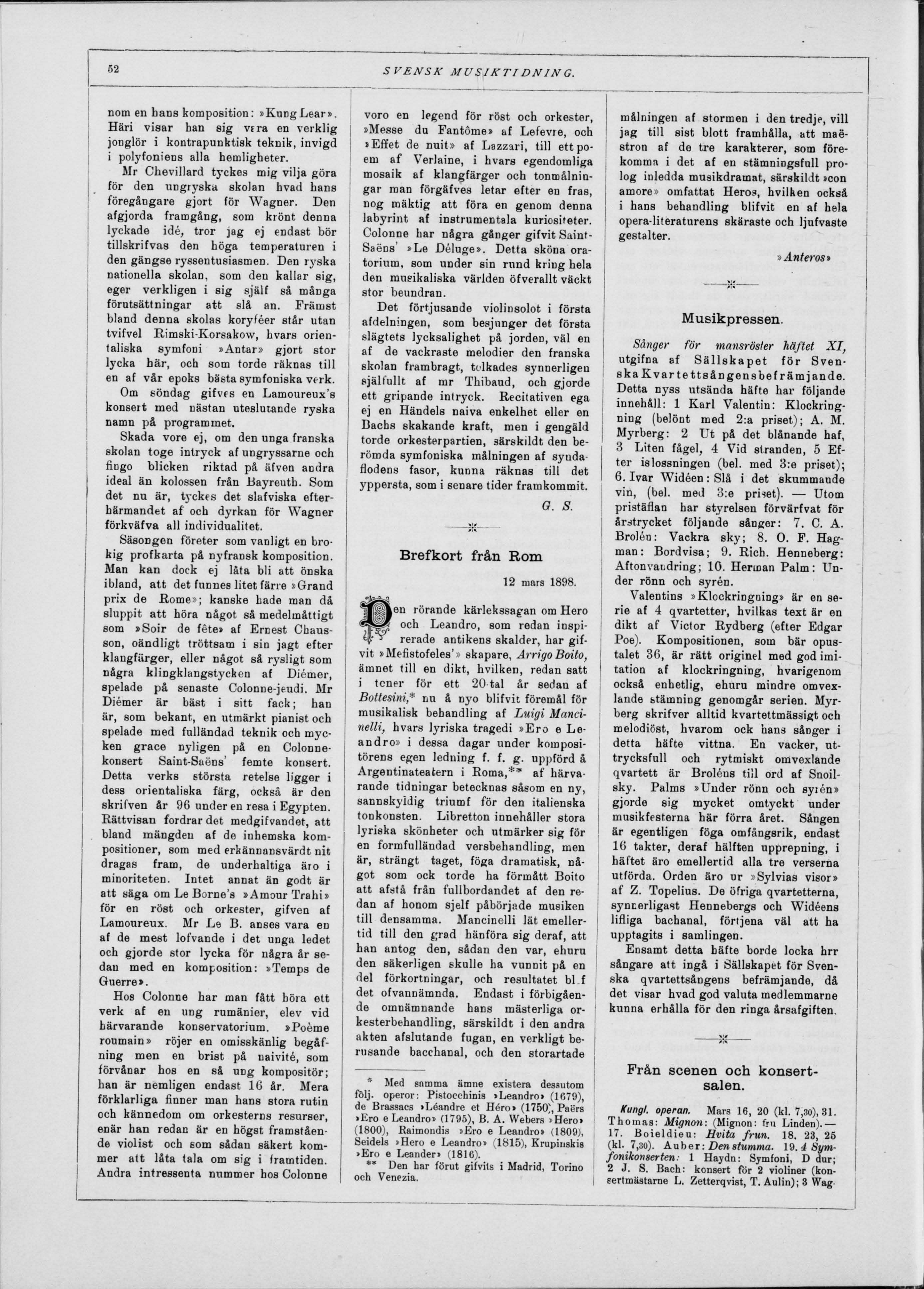 Kungt. operan. Mars 16, 20 (kl. 7,30), 31.