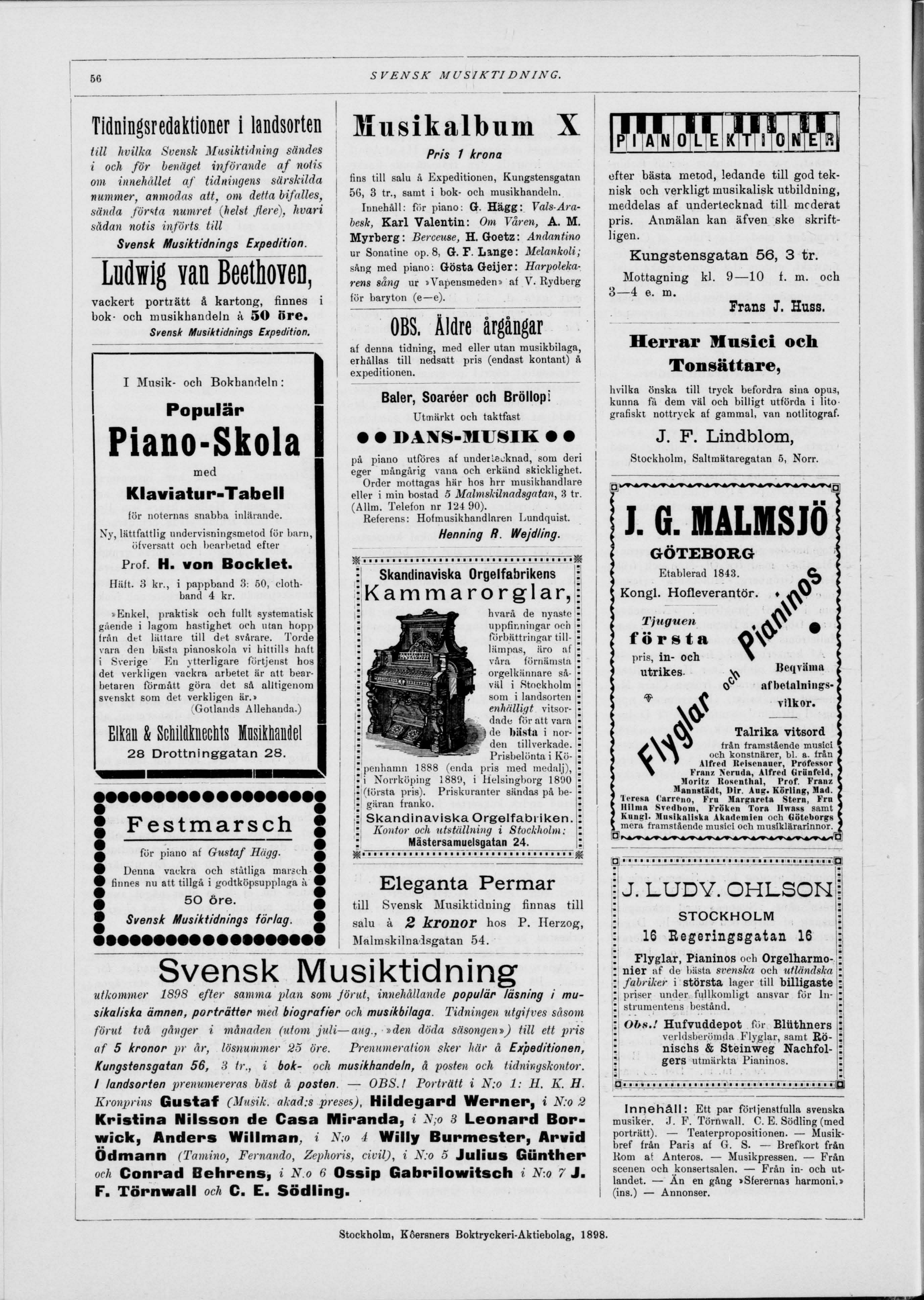 musikaliska ämnen, porträtter med biografier och musikbilaga. Tidningen utgifves såsom