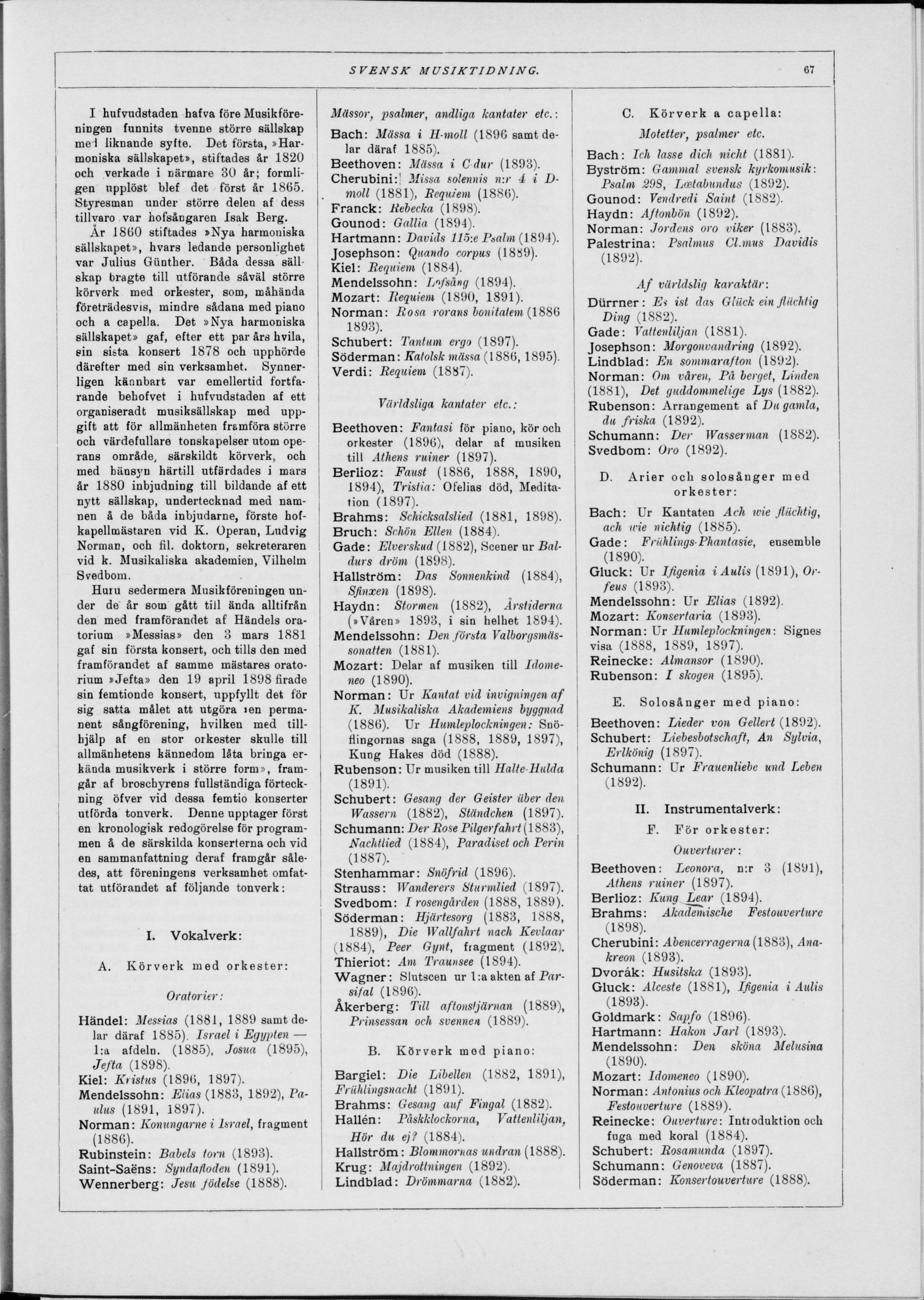 utförda tonverk. Denne upptager först