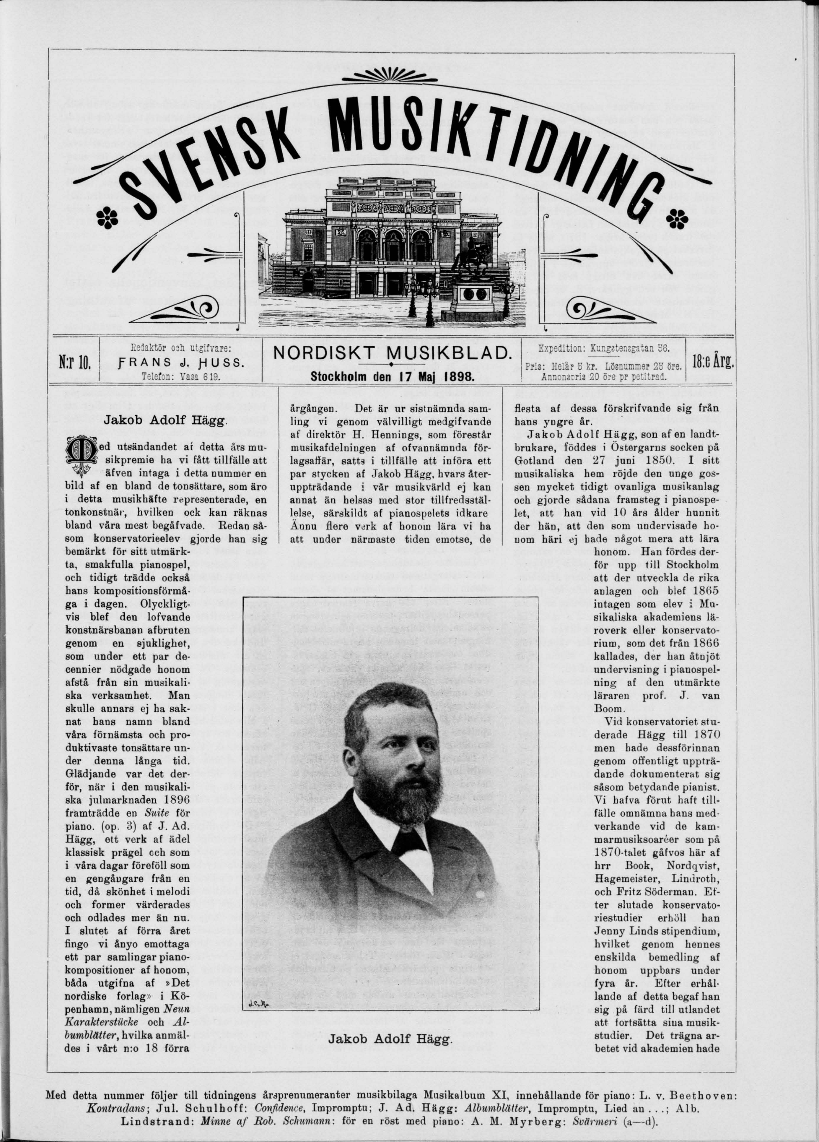 Med detta nummer följer till tidningens årsprenumeranter musikbilaga Musikalbum XI, innehållande för piano: L. v. Beethoven:
