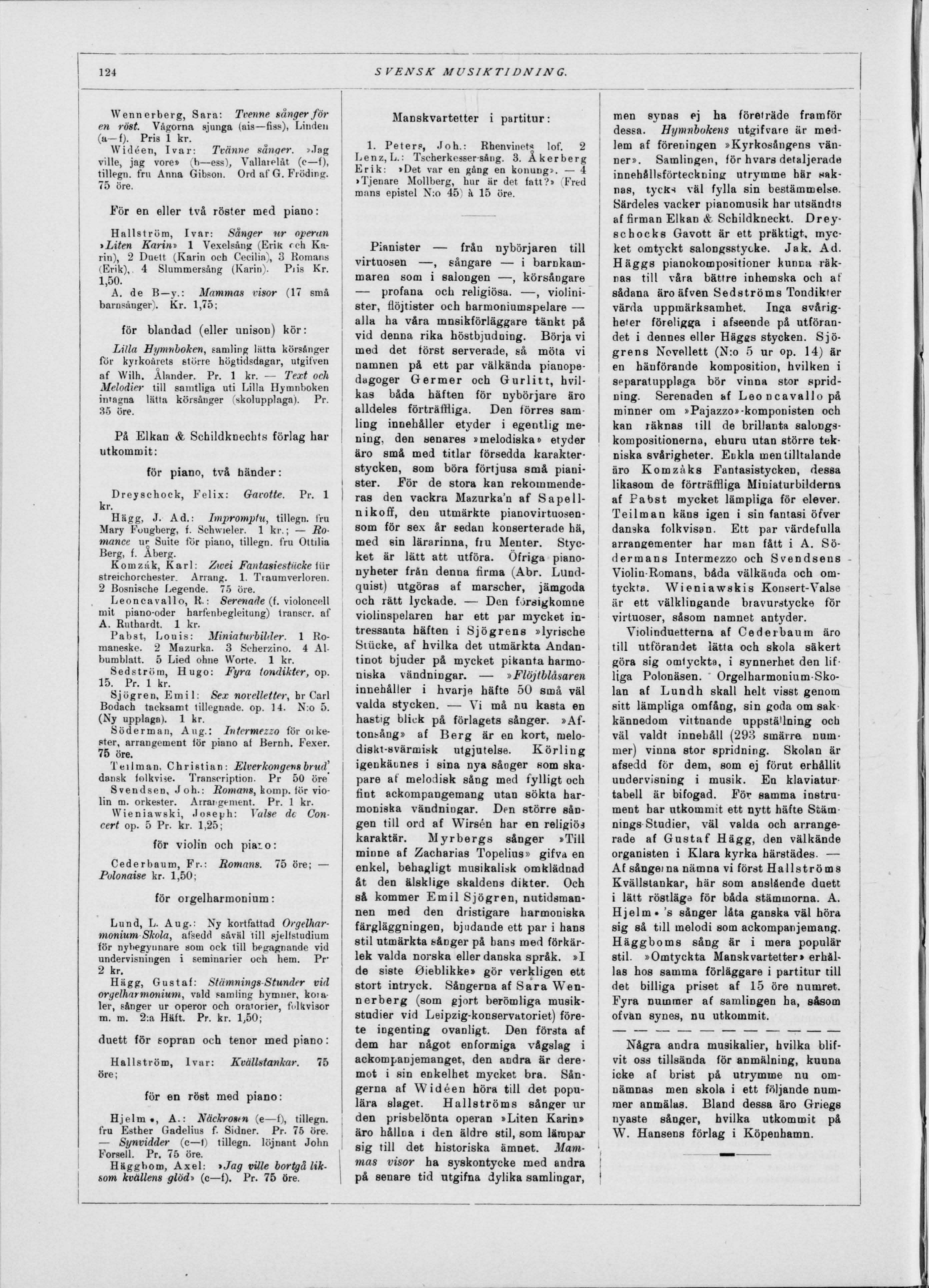 som kvällens glöd> (c—f). Pr. 75 öre.
