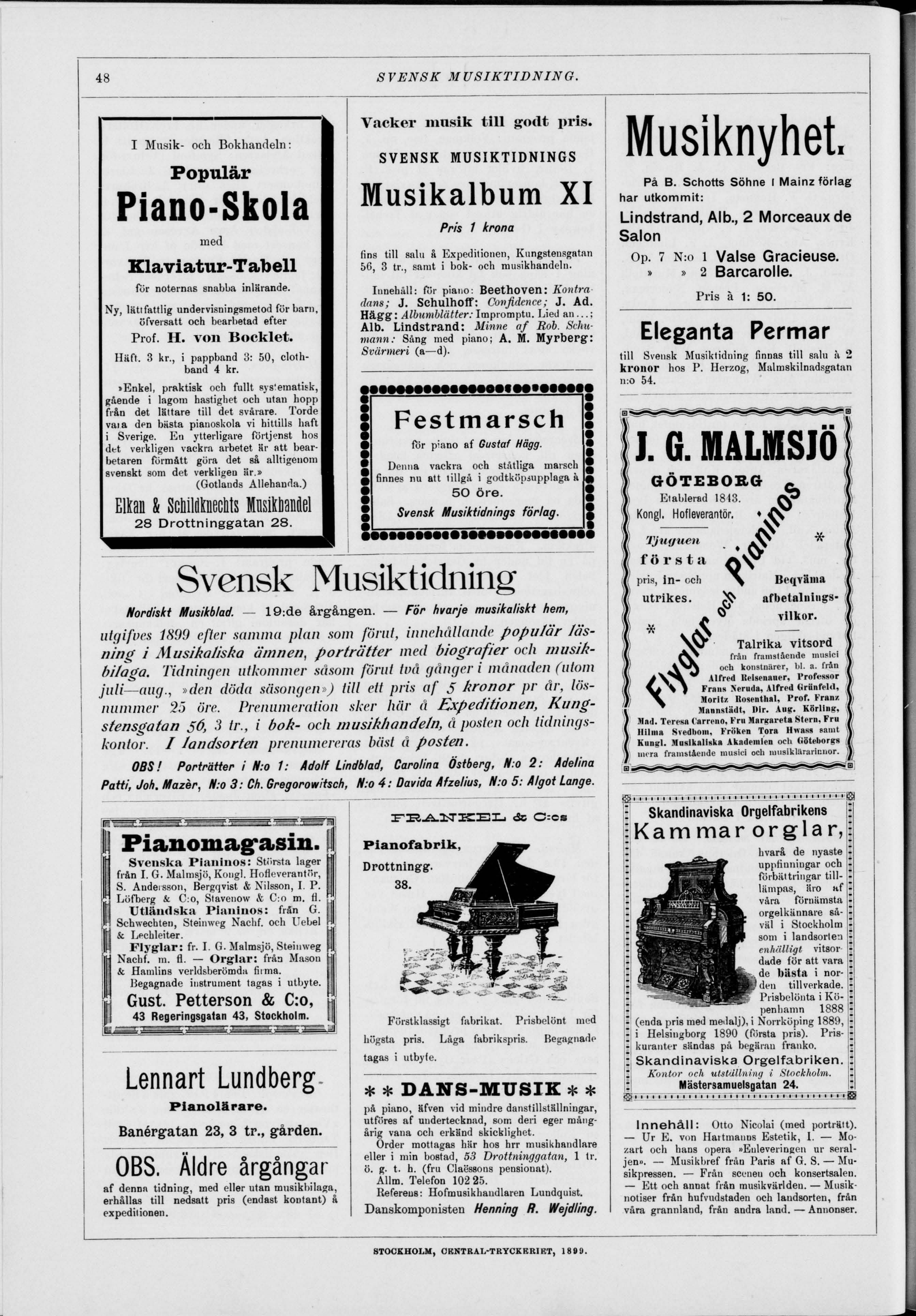 Nordiskt Musikblad. — 19:de årgången. — För hvarje musikaliskt hem,