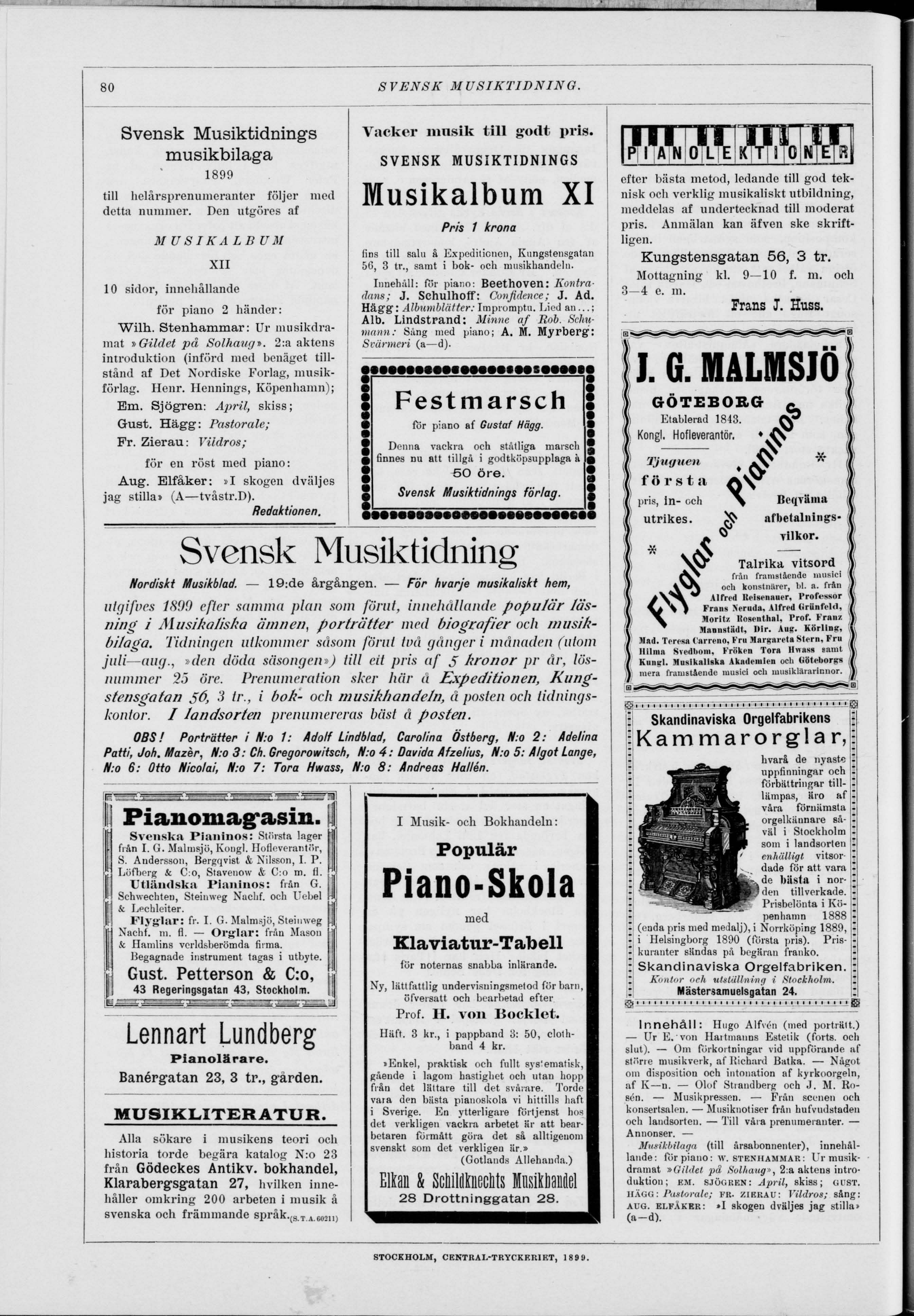 musikbilaga. Tidningen utkommer såsom förut tvä gånger i månaden (utom