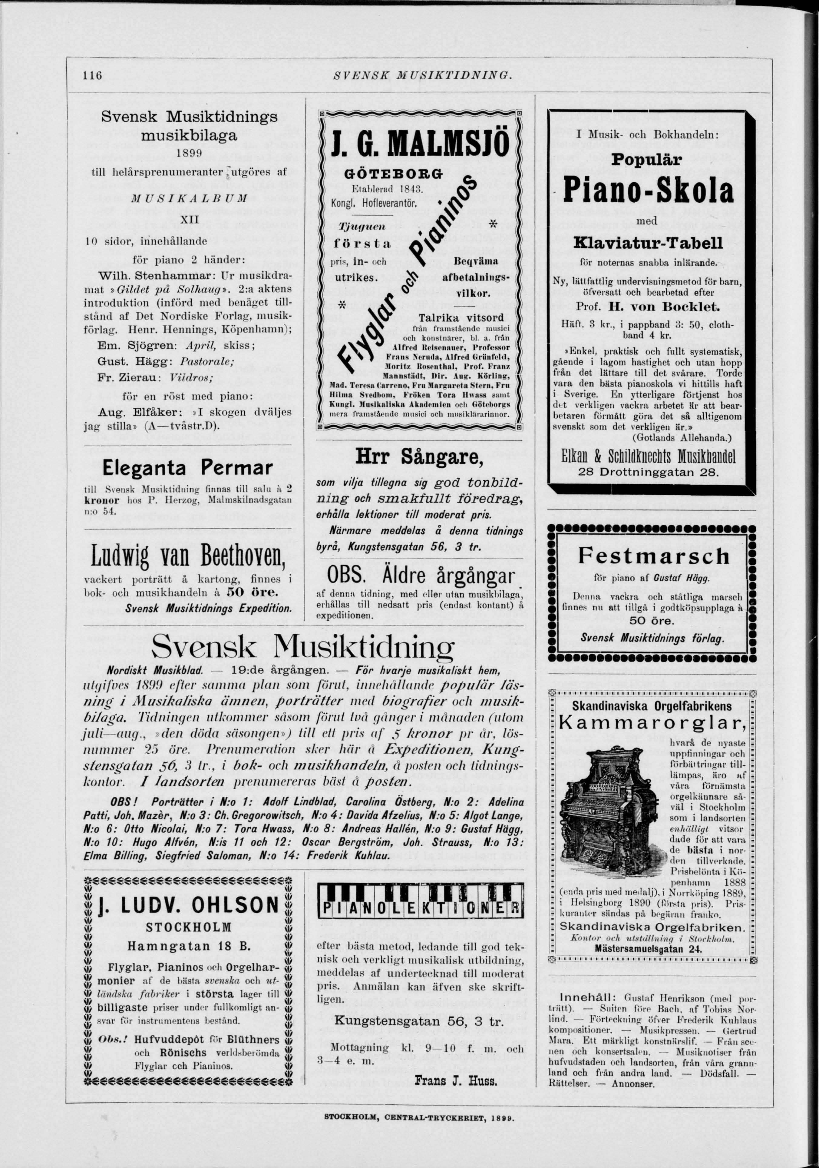 musikbilaga. Tidningen utkommer susom förut tuå (junger i månaden (utom