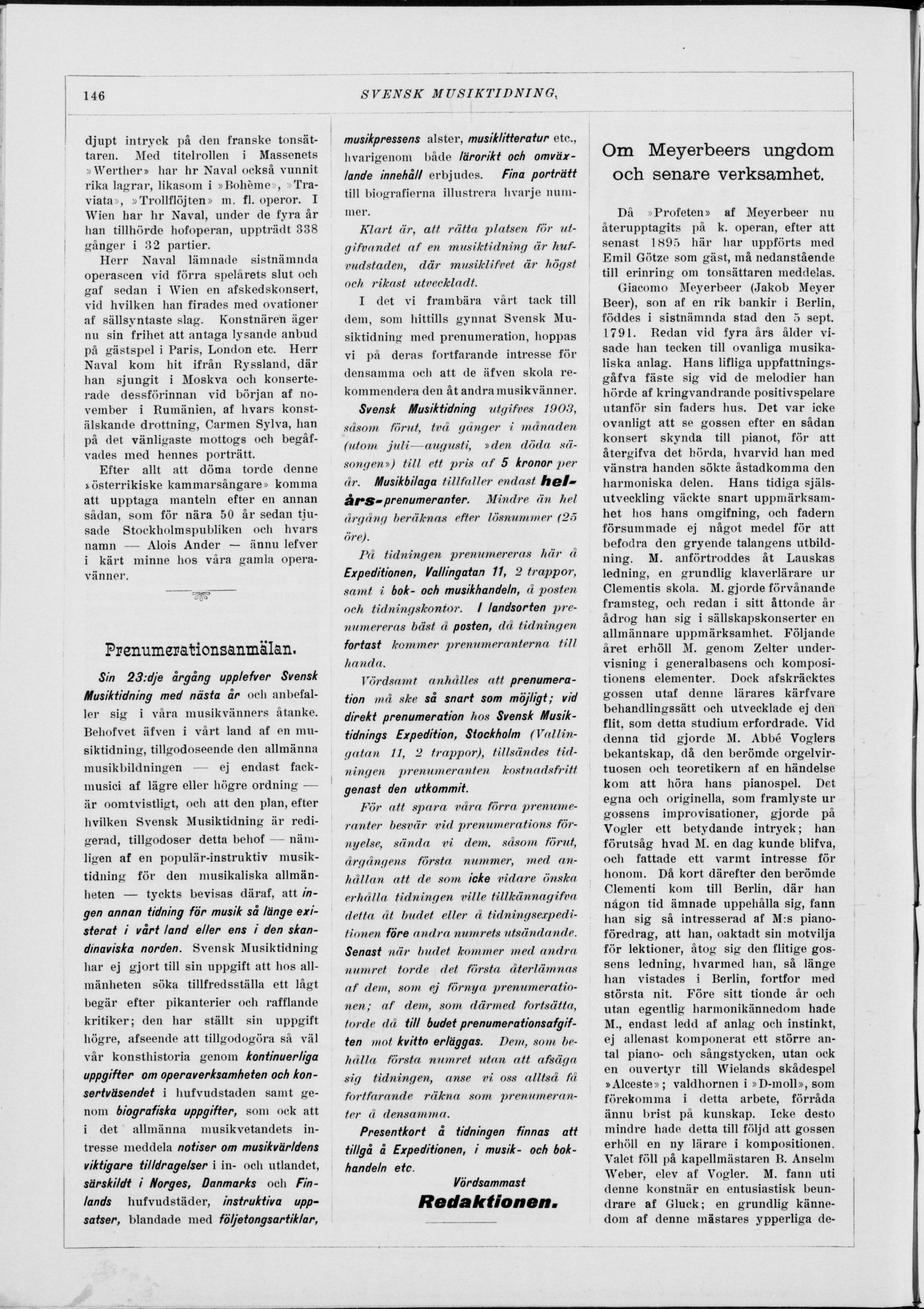 Full resolution (JPEG) - On this page / på denna sida - N:r 19 & 20. 17 Dec. 1902 - Franz Naval (såsom Romeo) - Prenumerationsanmälan - Om Meyerbeers ungdom och senare verksamhet (med Meyerbeers porträtt)