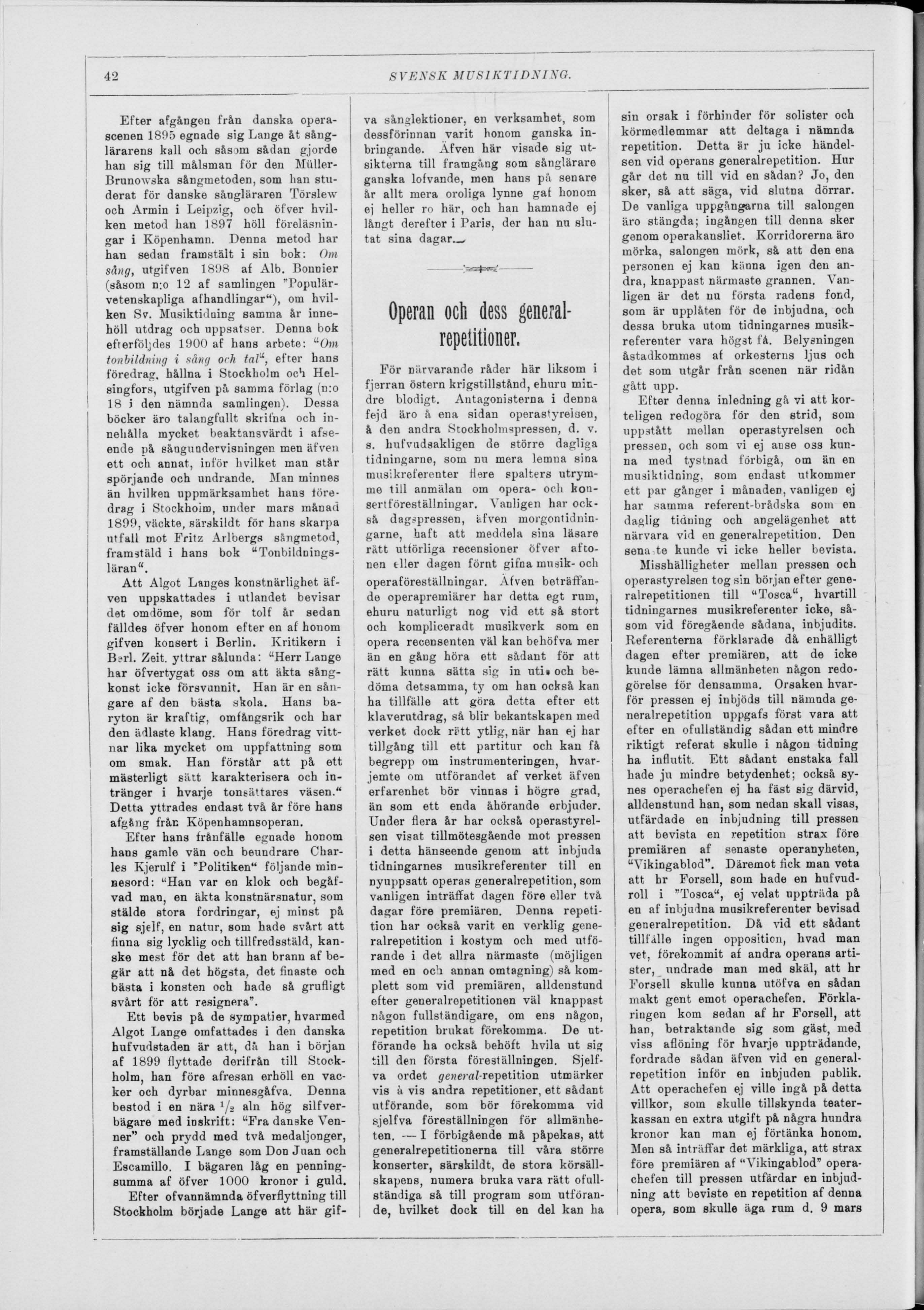 Full resolution (JPEG) - On this page / på denna sida - N:r 6. 18 Mars 1904 - Algot Lange † (med porträtt) - Operan och dess generalrepetitioner