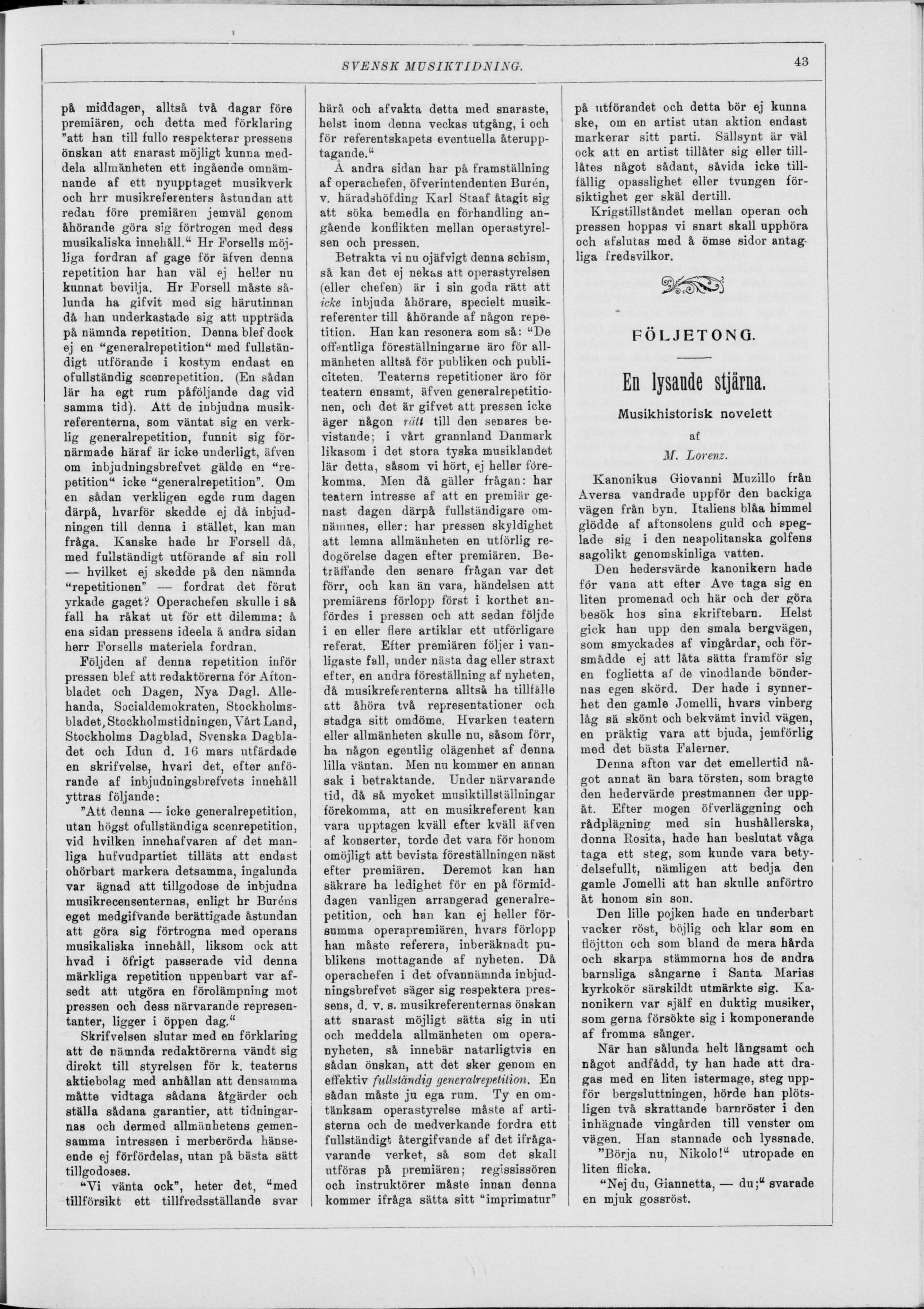 Full resolution (JPEG) - On this page / på denna sida - N:r 6. 18 Mars 1904 - Operan och dess generalrepetitioner - Följetong: En lysande stjerna. Musikhistorisk novellett af M. Lorenz