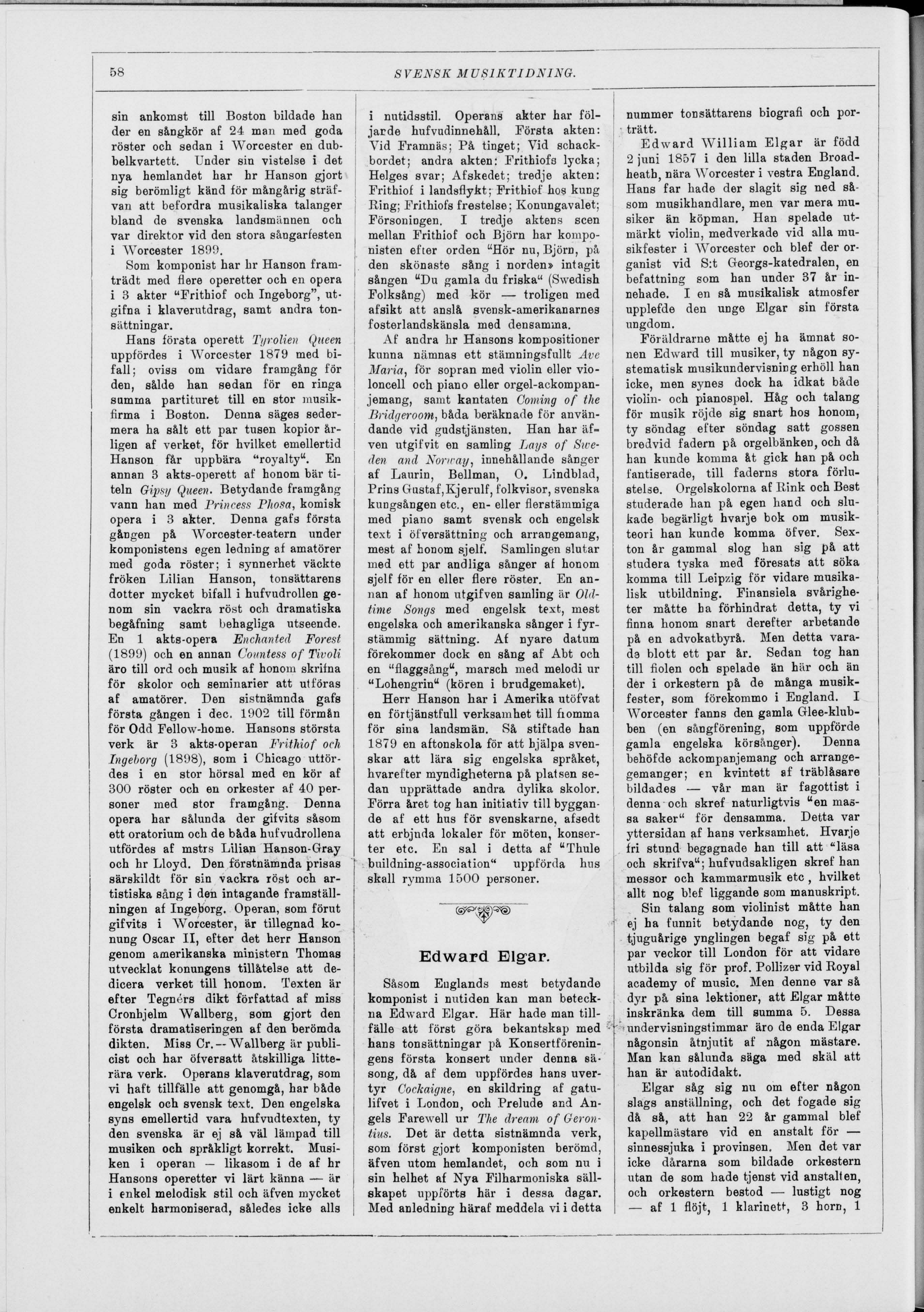 Full resolution (JPEG) - On this page / på denna sida - N:r 8. 20 April 1904 - Carl F. Hanson och Lilian Hanson-Gray (med porträtter) - Edward Elgar (med porträtt)