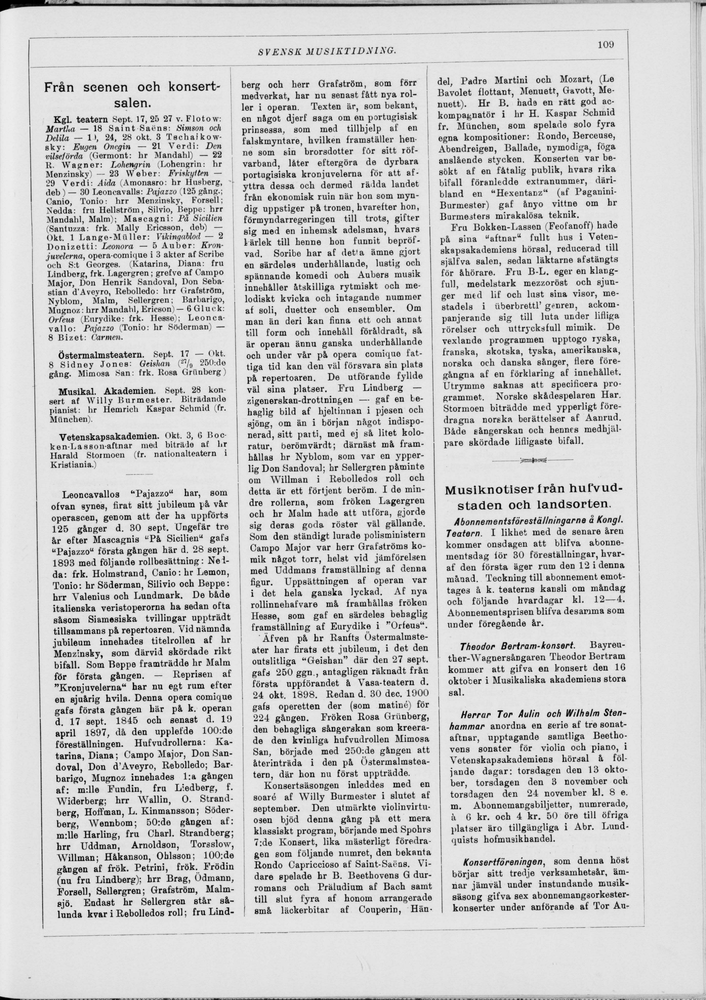 Full resolution (JPEG) - On this page / på denna sida - N:r 14. 8 Oktober 1904 - Från scenen och konsertsalen - Musiknotiser från hufvudstaden och landsorten - Abonnementsföreställningarne å Kongl. Teatern - Theodor Bertram-konsert - Herrar Tor Aulin och Wilhelm Stenhammar - Konsertföreningen