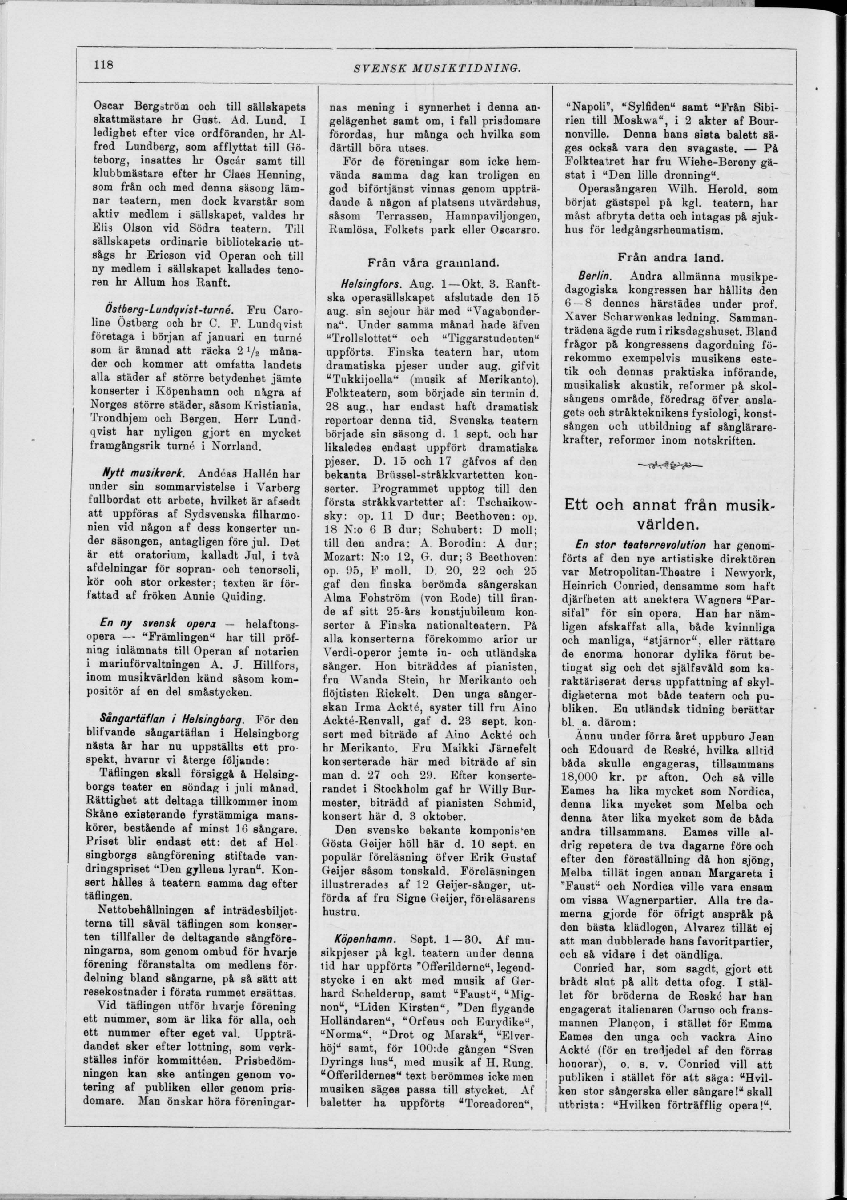 Full resolution (JPEG) - On this page / på denna sida - N:r 15. 25 Oktober 1904 - Musiknotiser från hufvudstaden och landsorten - Sångsällskapet T. T. - Östberg-Lundqvist-turné - Nytt musikverk - En ny svensk opera - Sångartäflan i Helsingborg - Från våra grannland - Helsingfors - Köpenhamn - Från andra land - Berlin - Ett och annat från musikvärlden - En stor teaterrevolution