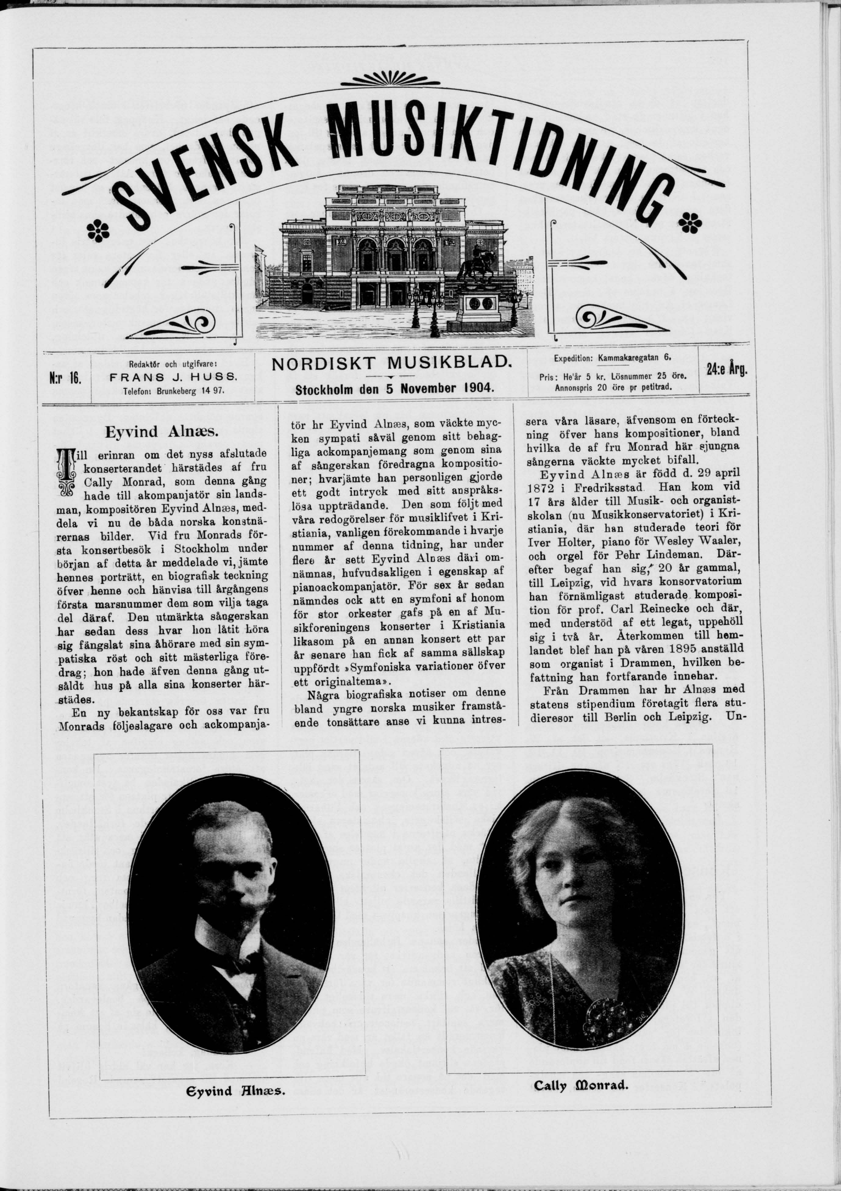 Full resolution (JPEG) - On this page / på denna sida - Titel och innehåll - N:r 16. 5 November 1904 - Eyvind Alnæs (med porträtt samt porträtt af fru Cally Monrad)