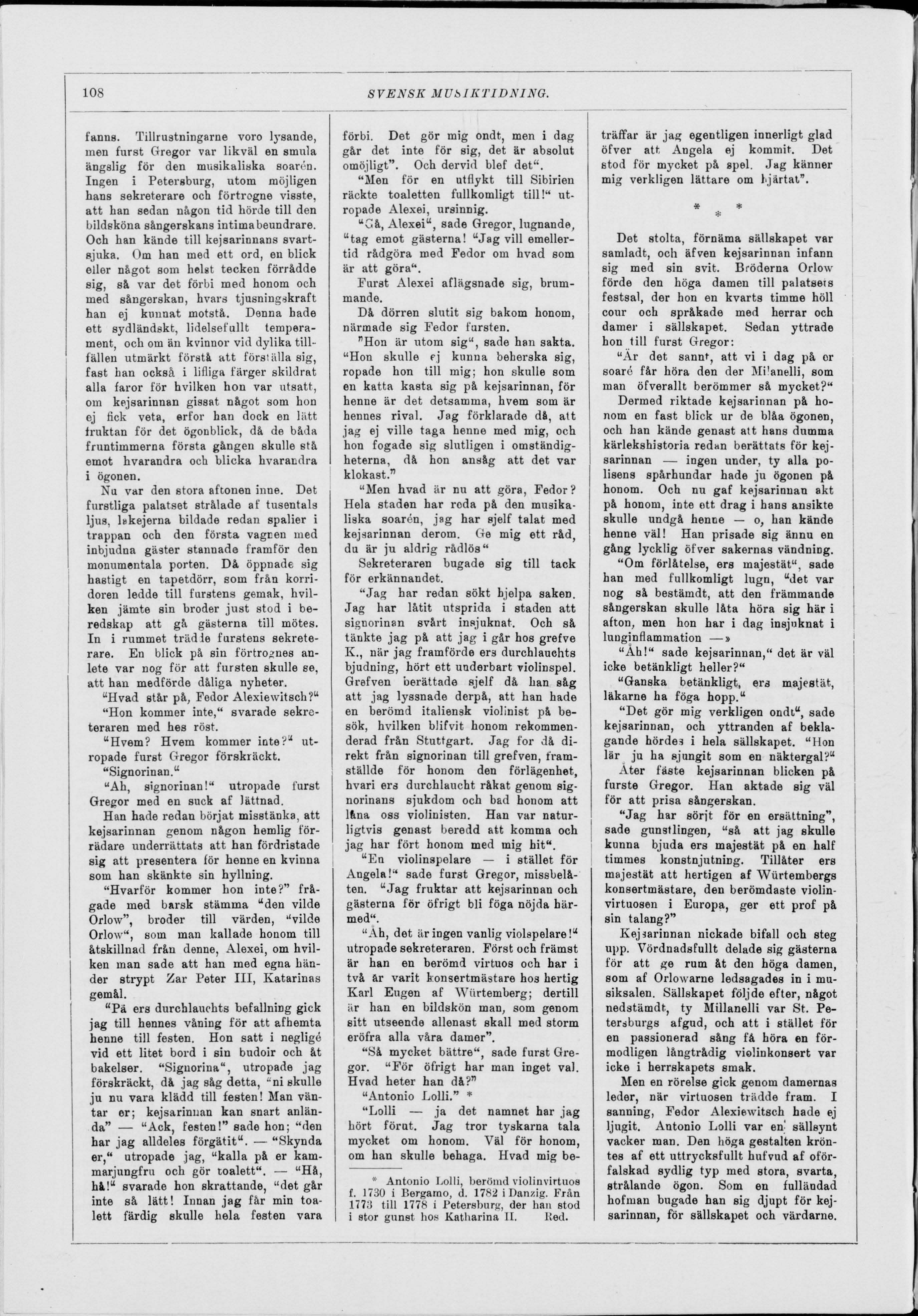 Full resolution (JPEG) - On this page / på denna sida - N:r 14. 3 Okt. 1905 - Följetong: Kejsarinnans violinist. Musikhistorisk novell af H. Klein