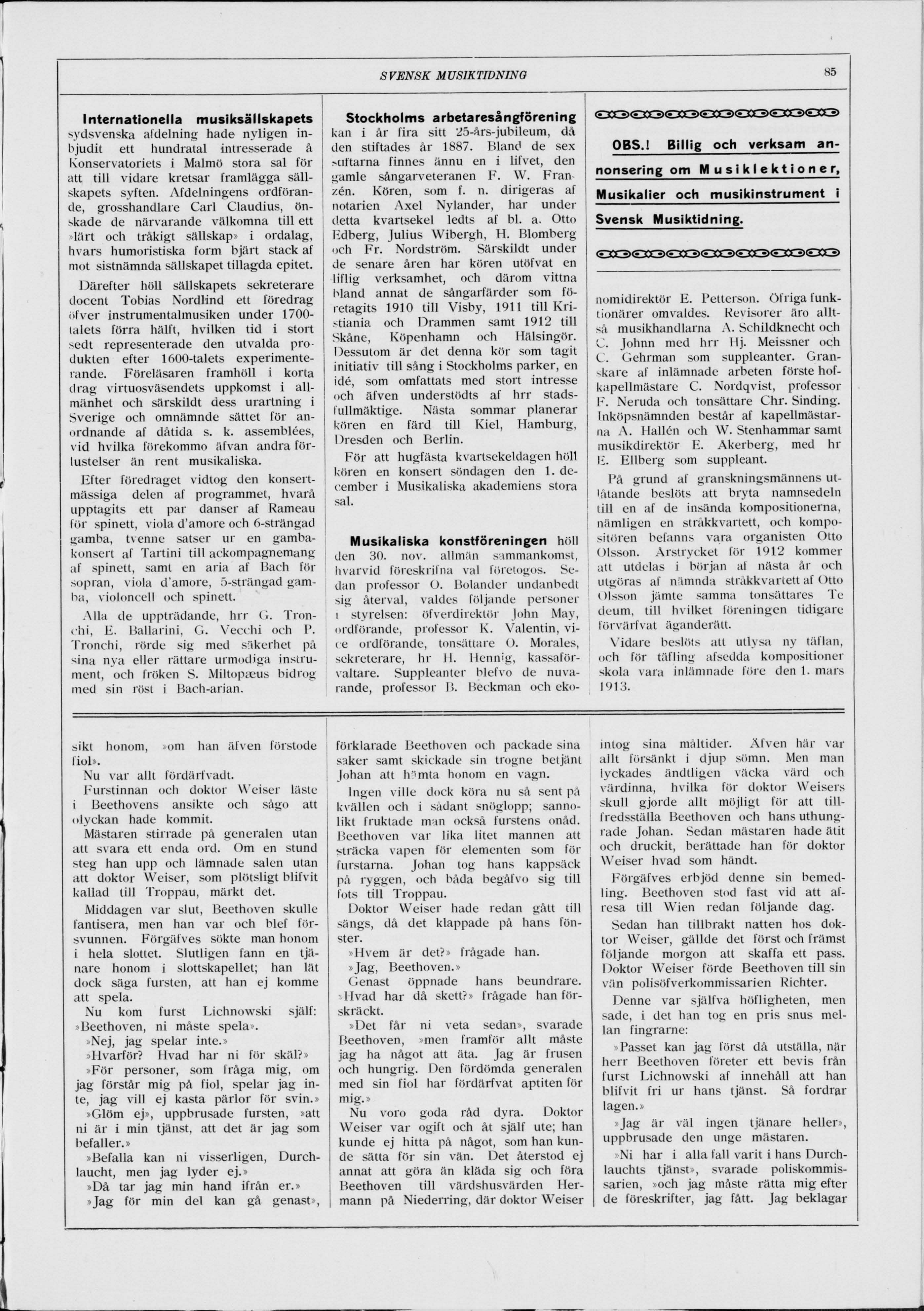 Full resolution (JPEG) - On this page / på denna sida - N:r 12—14. 20 December 1912 - Musiknotiser från hufvudstaden och landsorten - Internationella musiksällskapet - Stockholms arbetaresångförening - Musikaliska konstföreningen - Beethovens goda fé