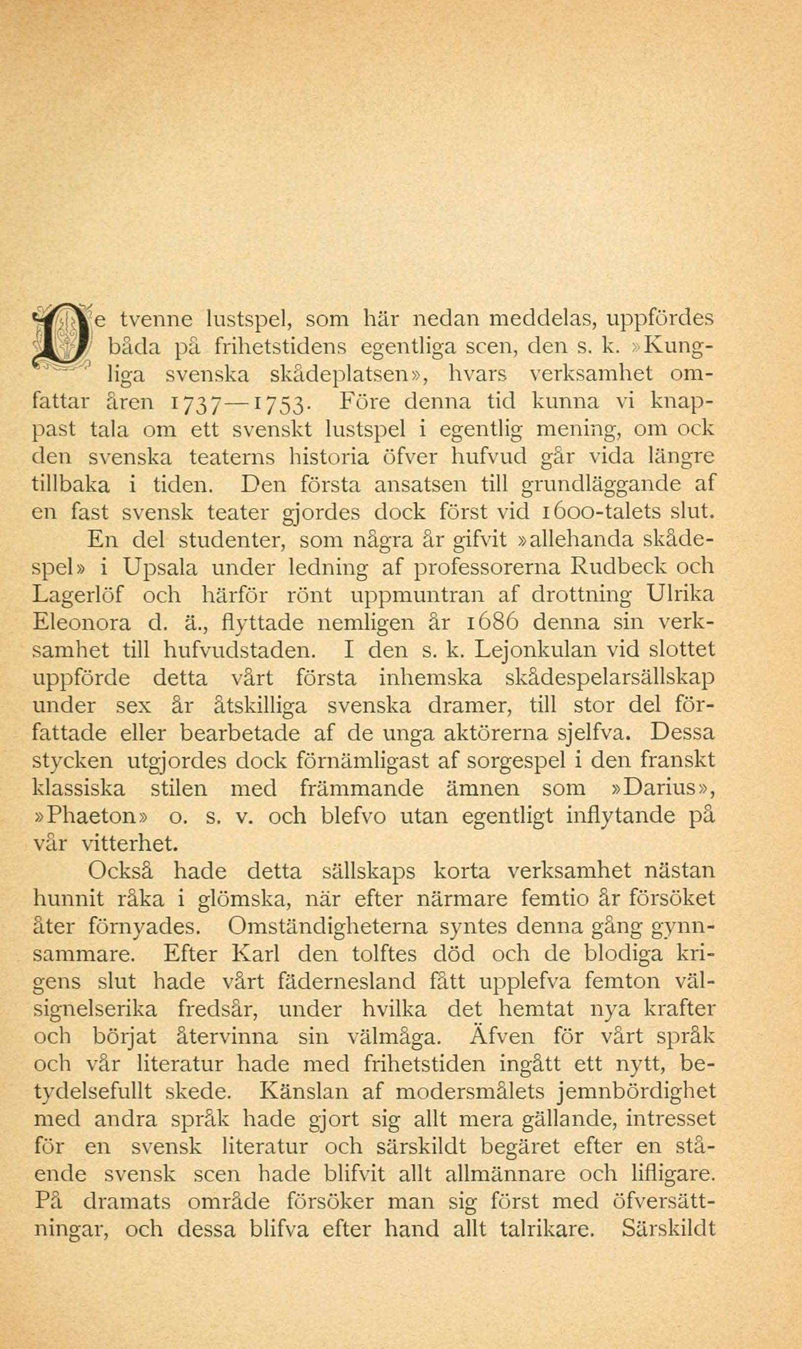 »Kungliga svenska skådeplatsen», hvars verksamhet