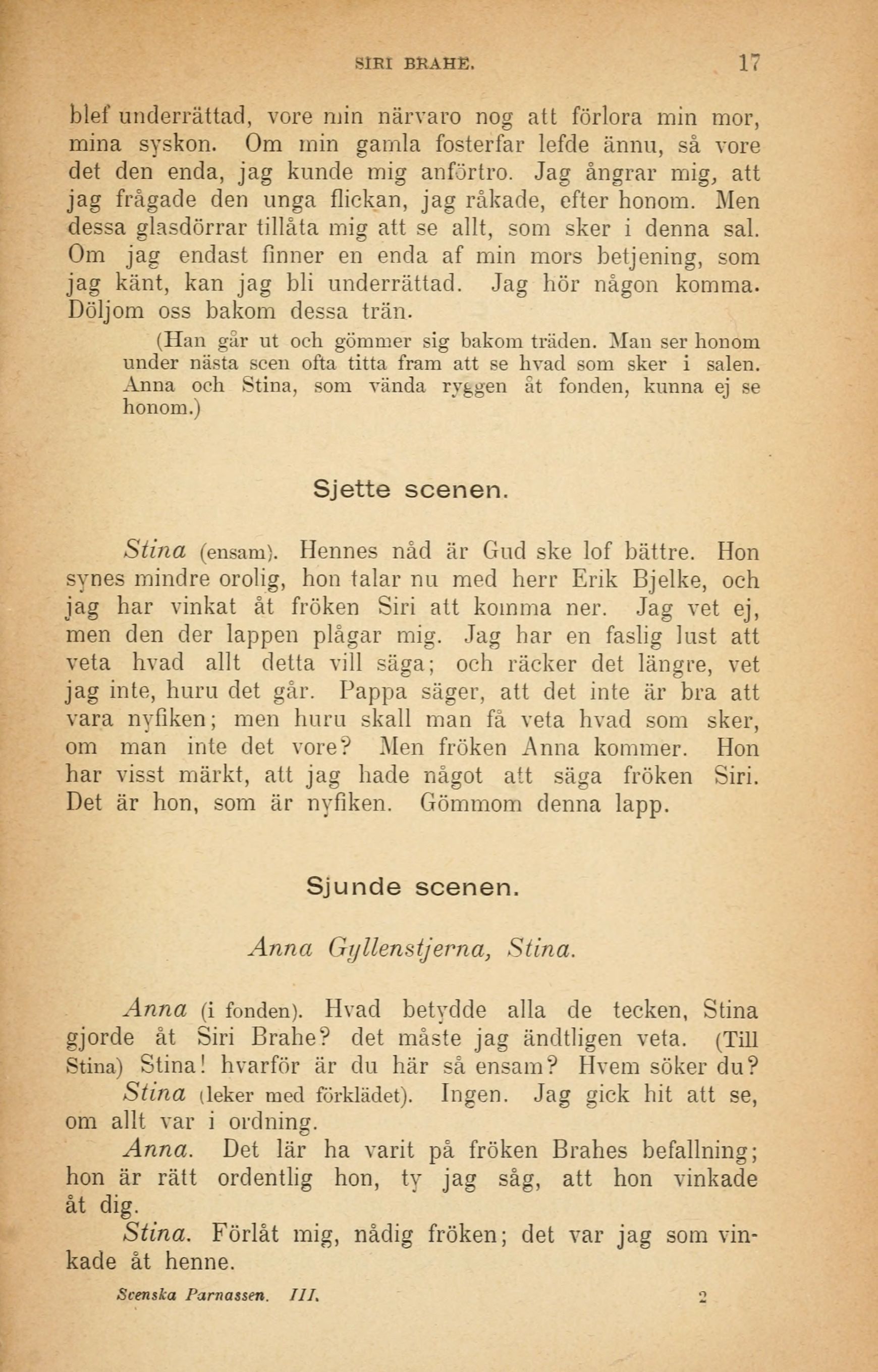 gjorde åt Siri Brahe? det måste jag ändtligen veta. (Till
