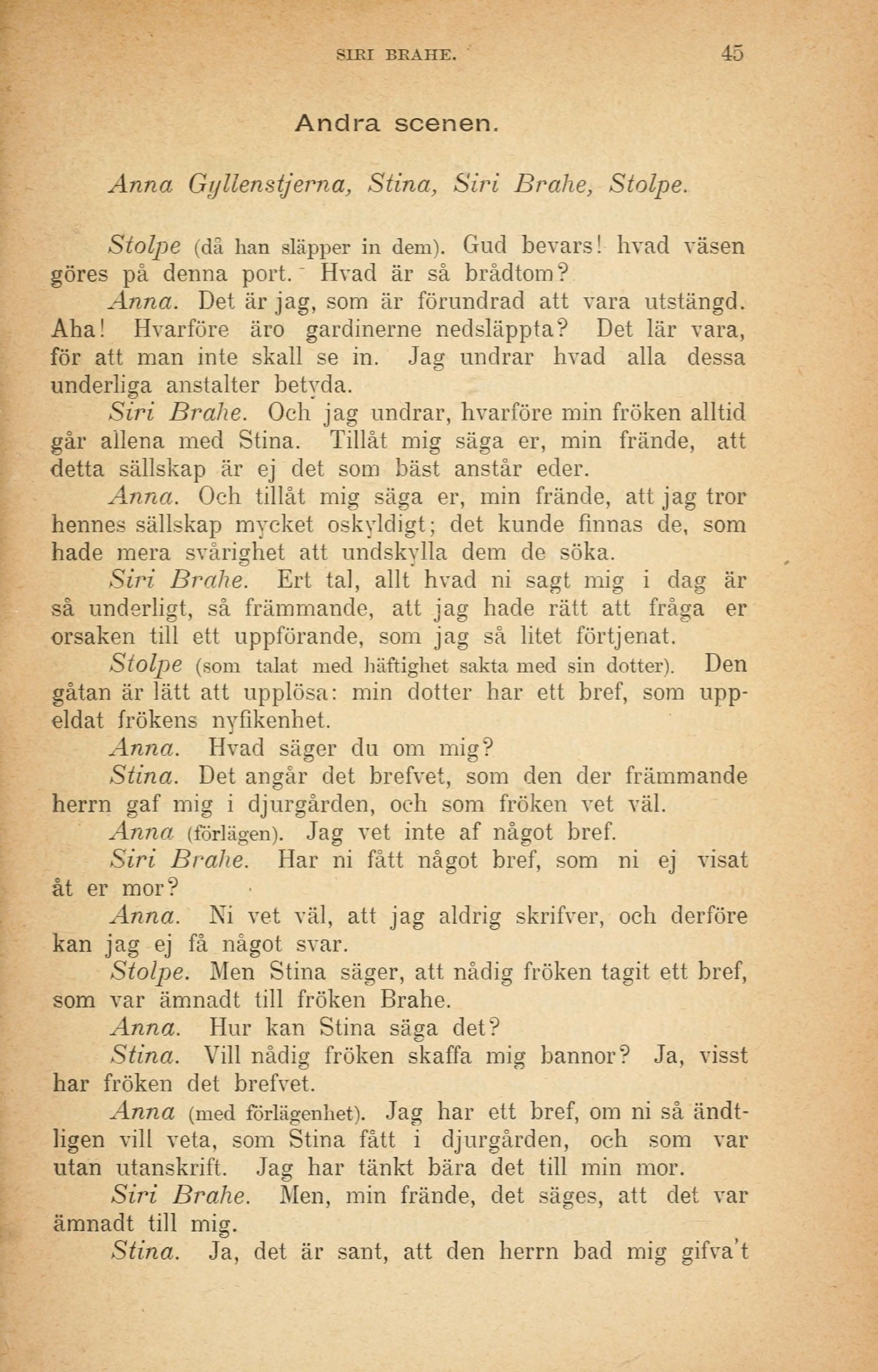 Siri Brahe. Och jag undrar, hvarföre min fröken alltid