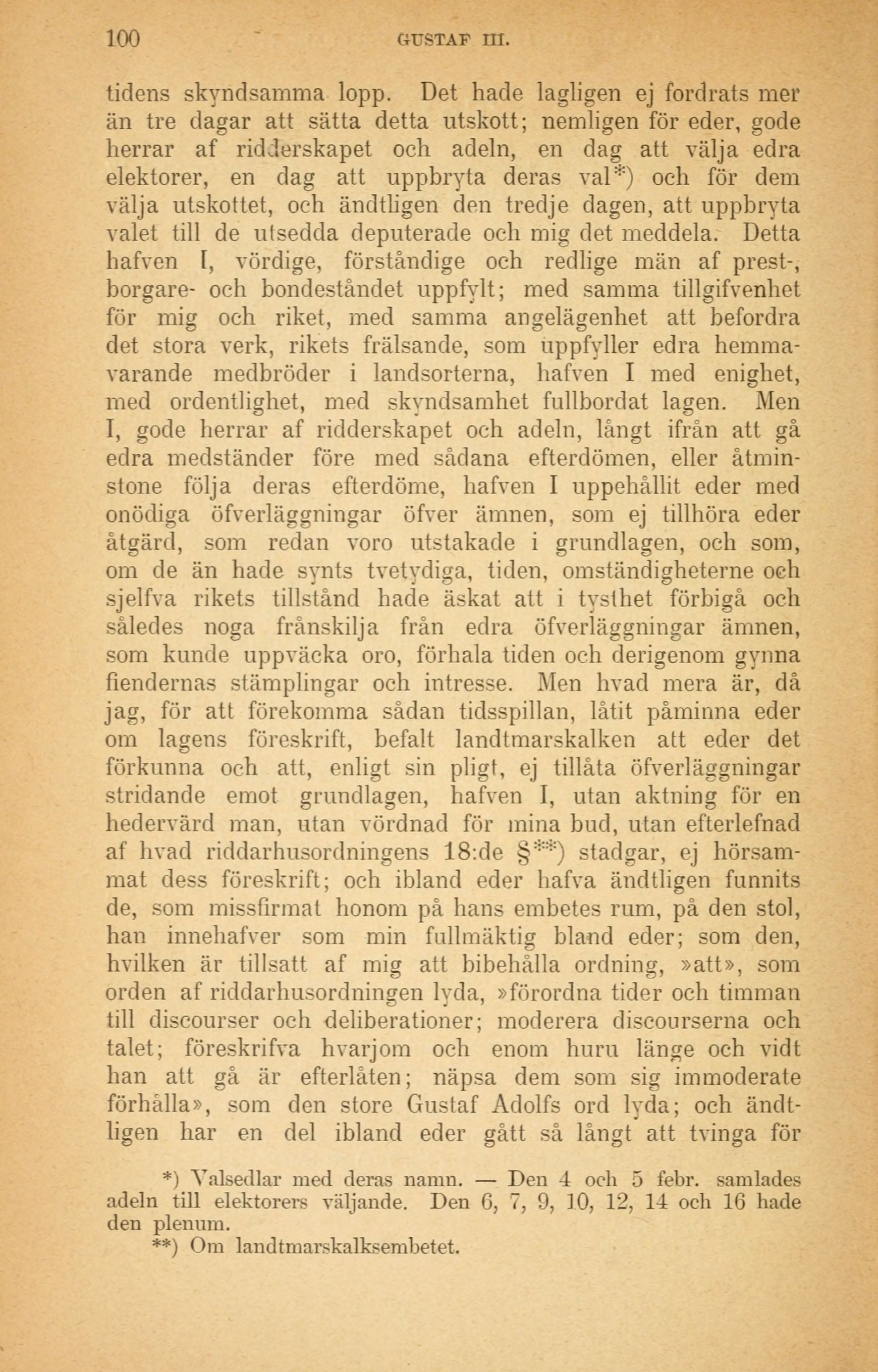 **) Om landtmarskalksembetet.