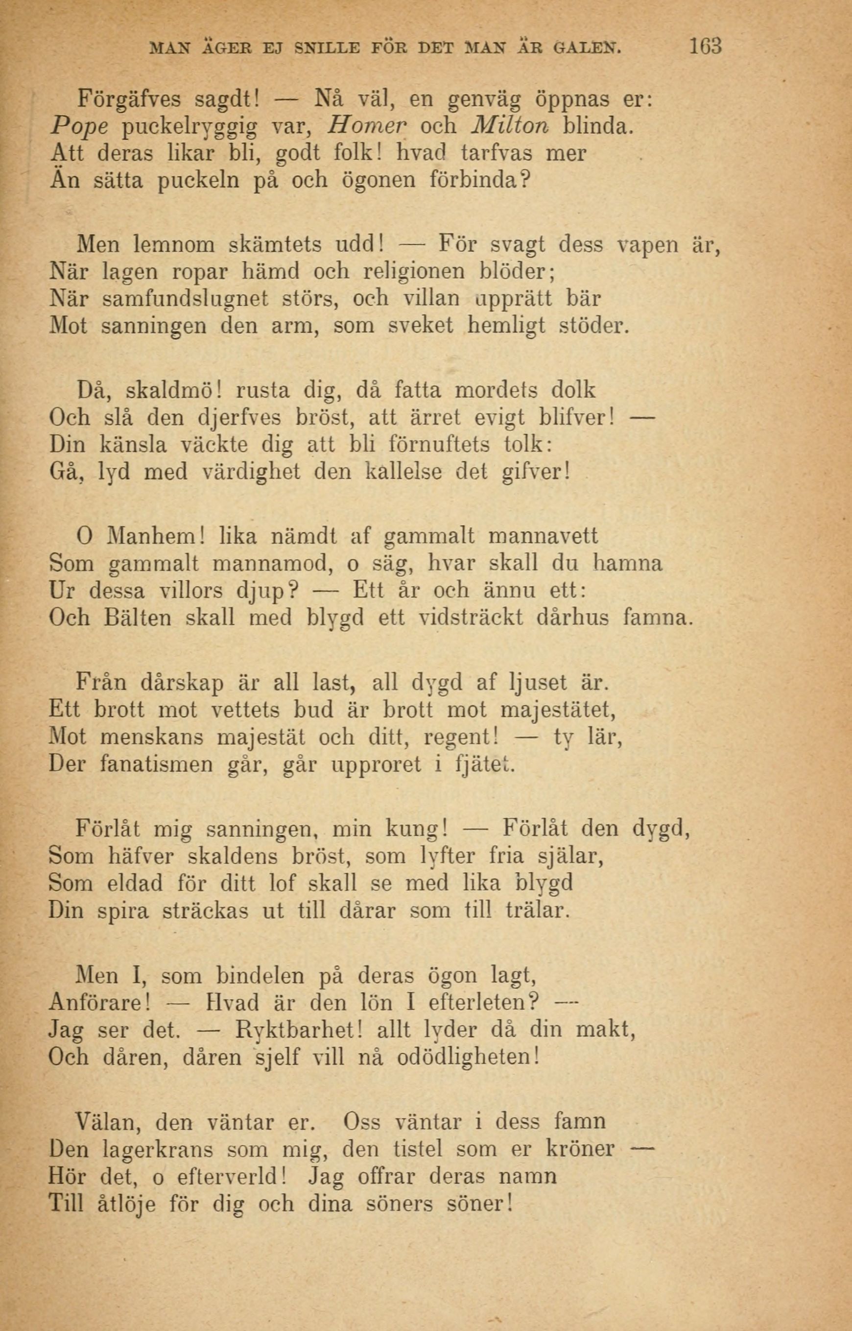 Och slå den djerfves bröst, att ärret evigt blifver! —