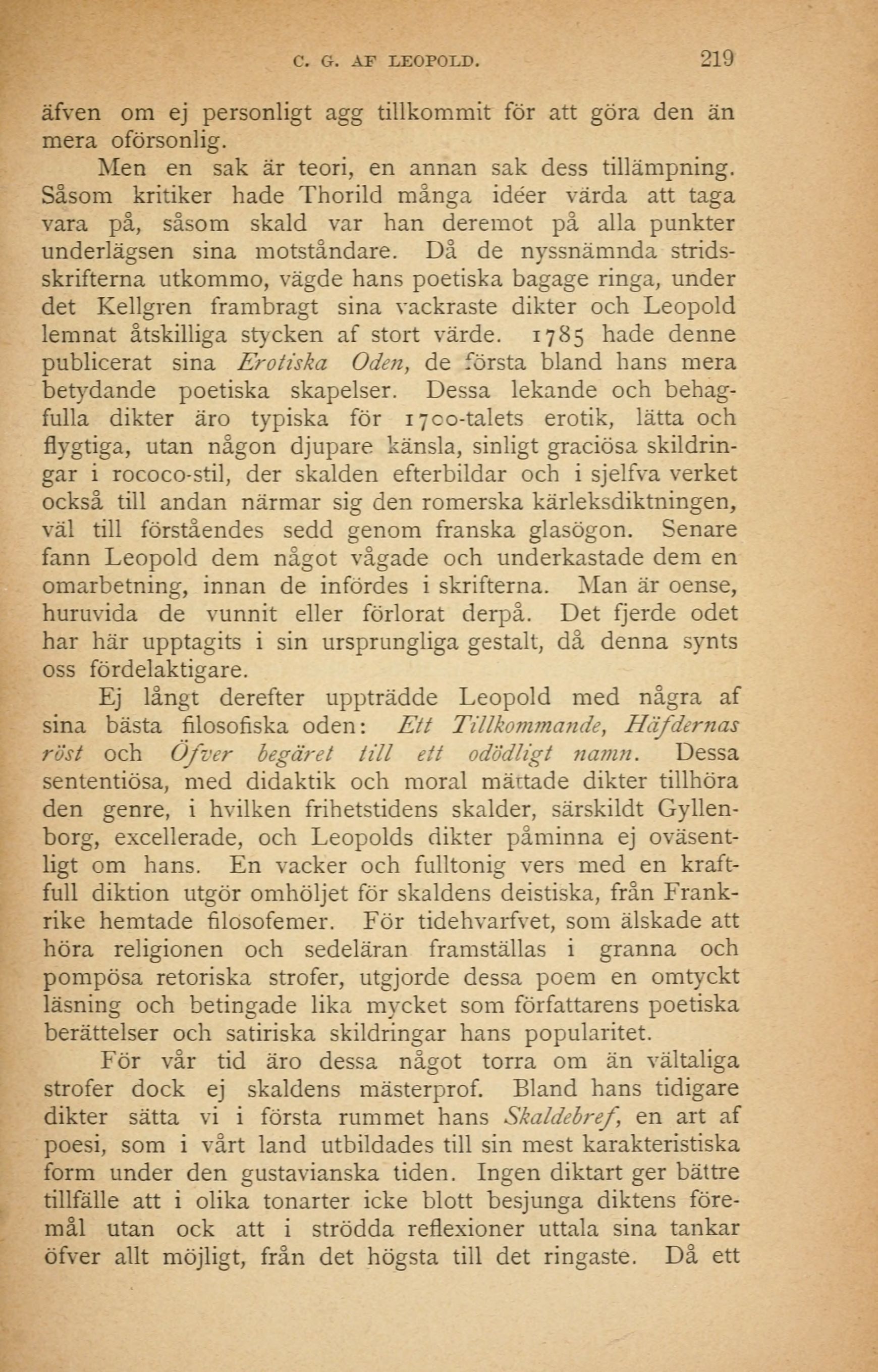 det Kellgren frambragt sina vackraste dikter och Leopold