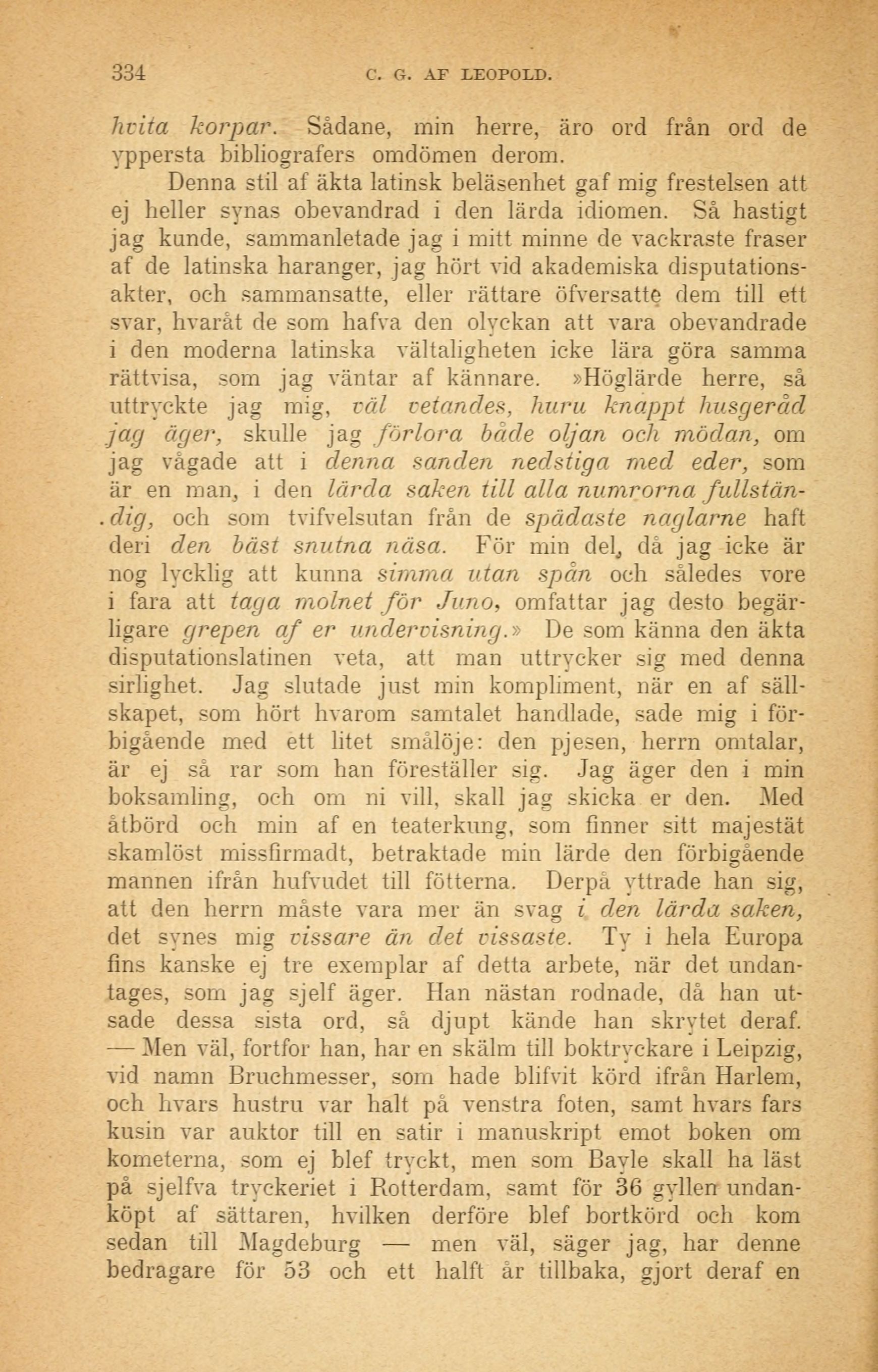 — Alen väl, fortfor han, har en skälm till boktryckare i Leipzig,