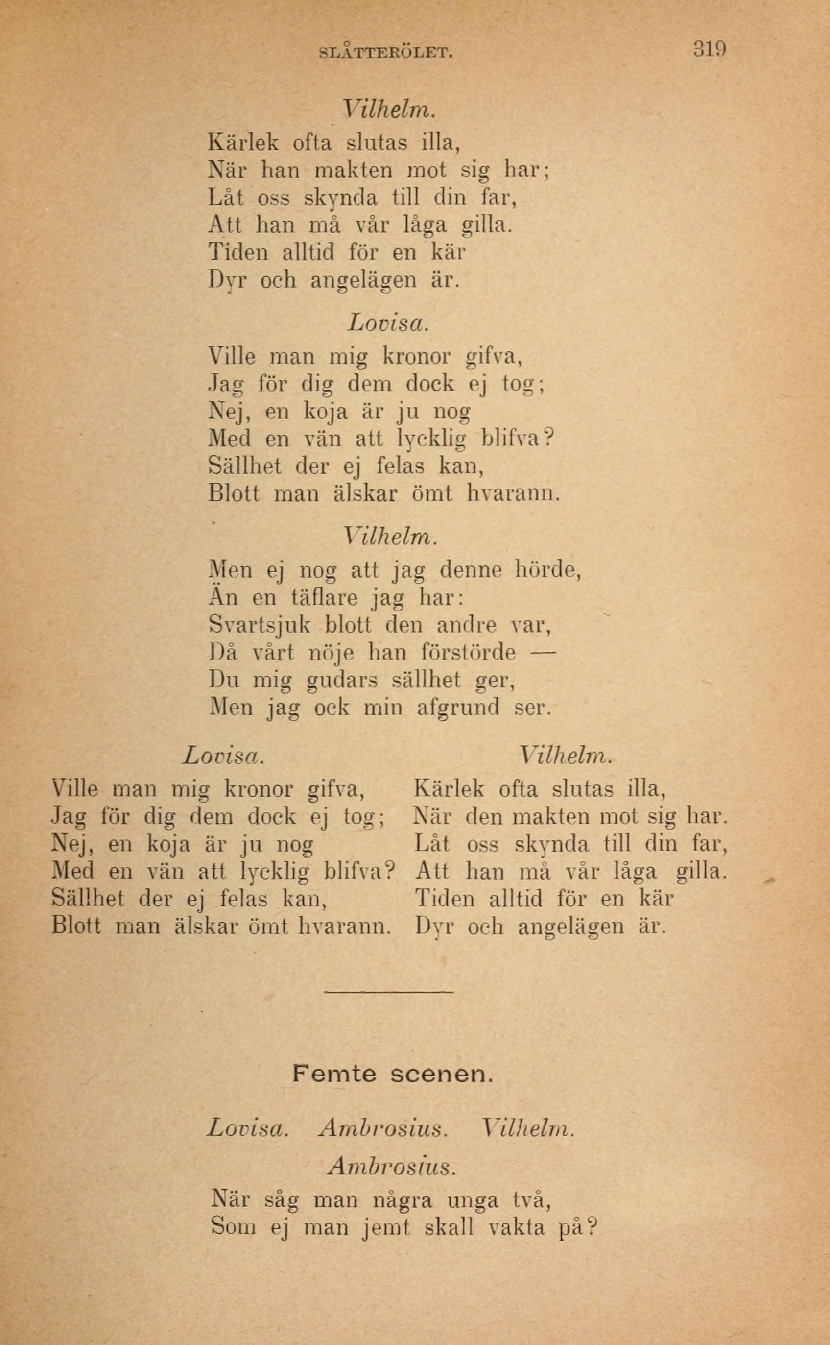 Ville man mig kronor gifva, Kärlek ofta slutas illa,