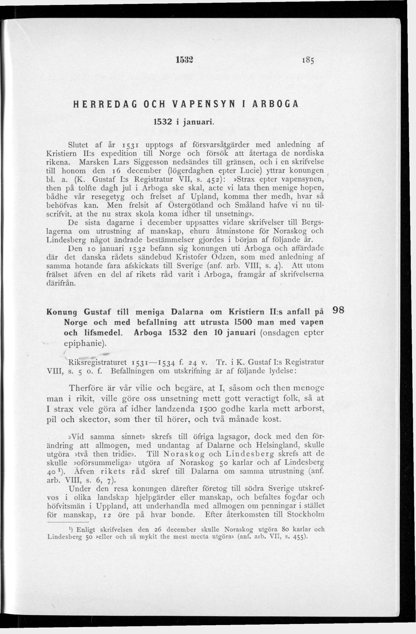 Den 10 januari 1532 befann sig konungen uti Arb och affärdade
