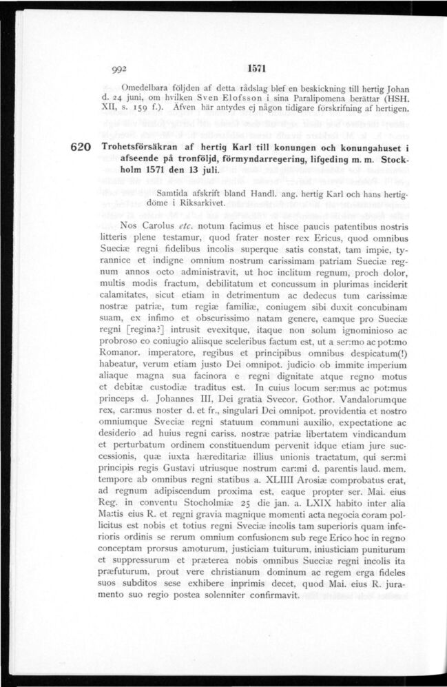 XII, s. 159 f.). Äfven här antydes ej någon tidigare förskrifning af hertigen.