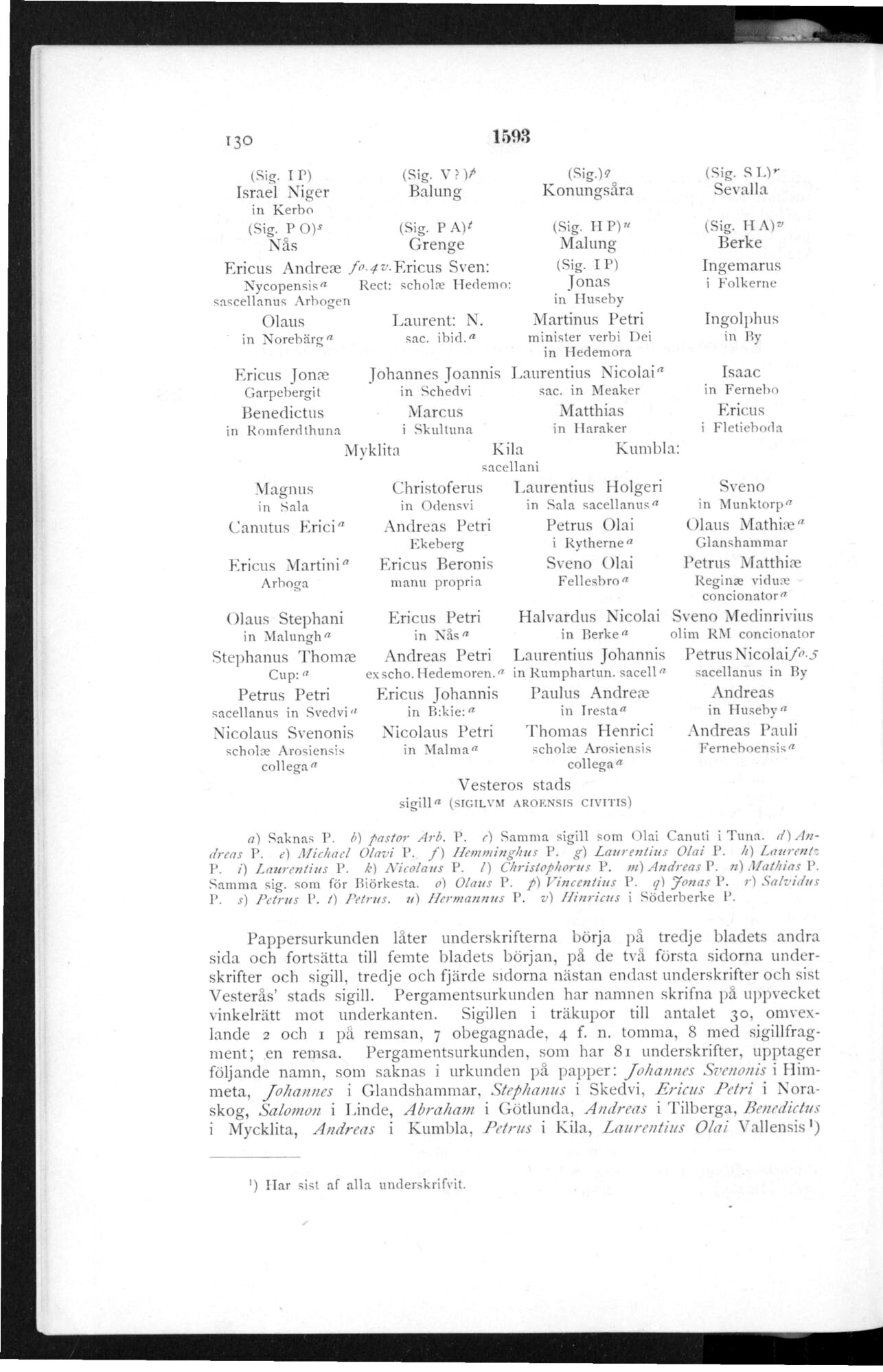ment; en remsa. Pergamentsurkunden, som har 81 underskrifter, upptager