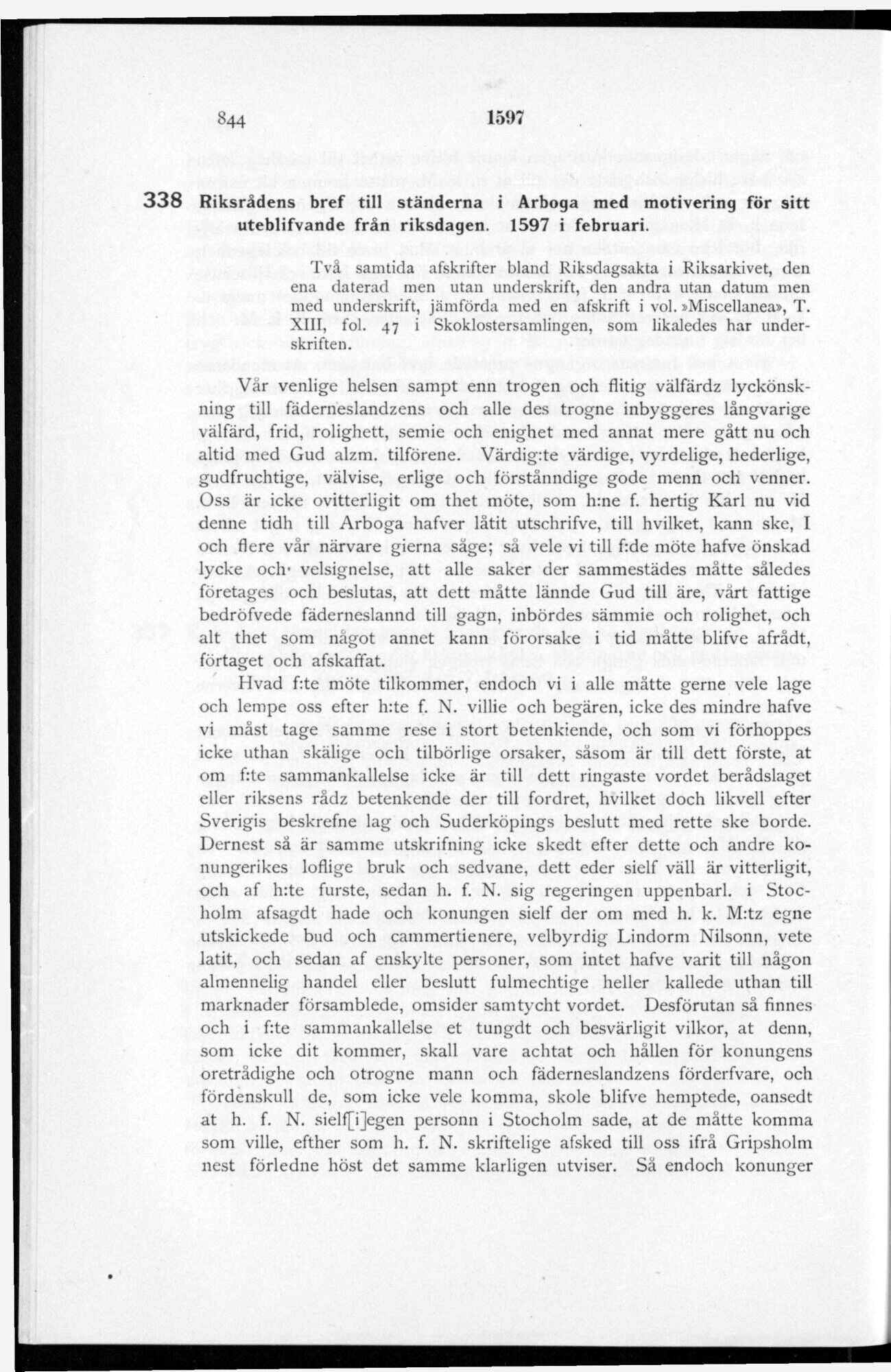 338 Riksrådens bref till ständerna i Arboga med motivering för sitt